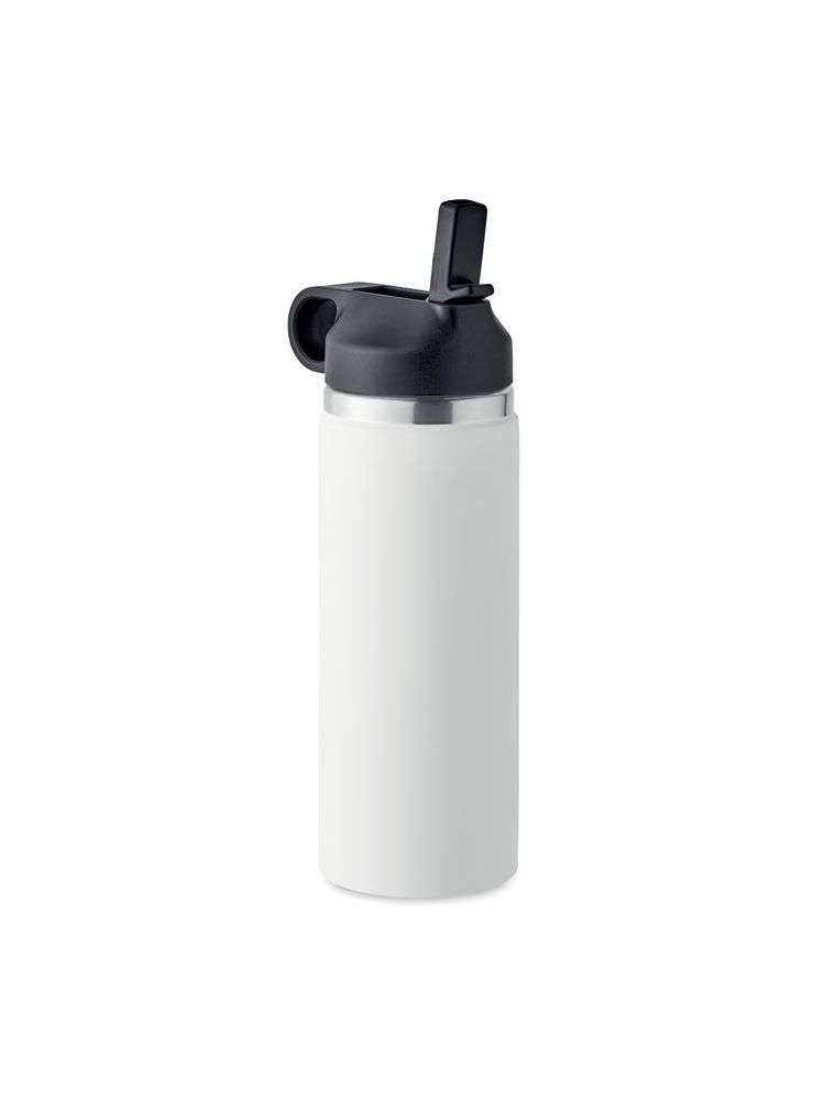 Izolowana próżniowo butelka z podwójnymi ściankami ze stali nierdzewnej z recyklingu (90% ze stali nierdzewnej z recyklingu i 10% ze stali nierdzewnej) z pokrywką z PP i wbudowaną słomką. Szczelna. Pojemność: 500 ml.