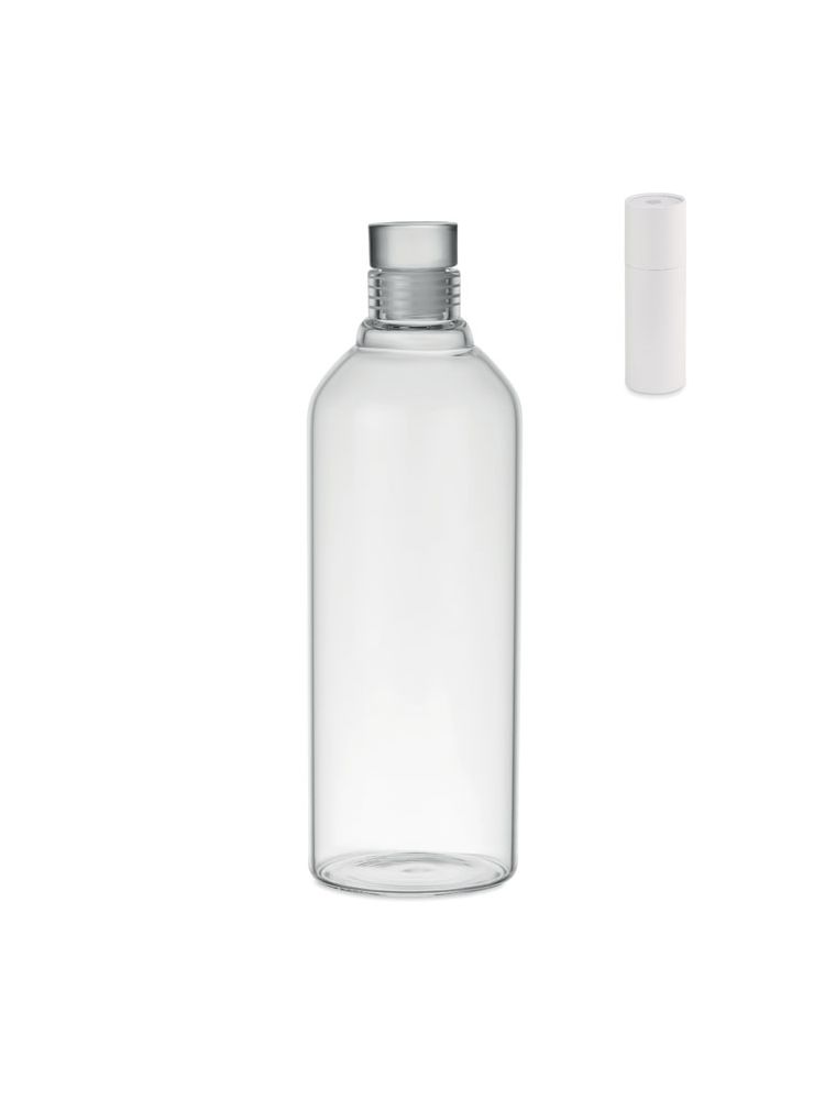 Duża butelka z borosilikatowego szkła, z nieprzeciekającym, szklanym korkiem. Prezentowana w tubie. Pojemność: 1 L.