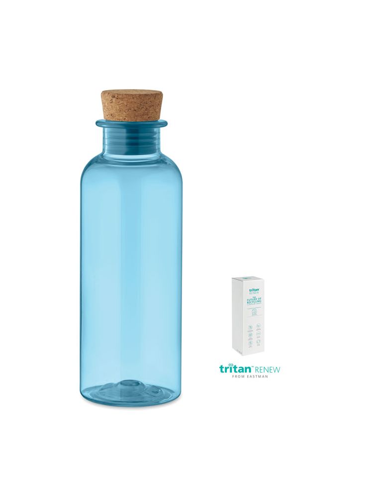 Butelka do picia z Tritanu Renew™ z korkową pokrywką. Pojemność: 500 ml. Ten produkt powstał w 50% z odpadów plastikowych przy użyciu certyfikowanego bilansu masy ISCC.