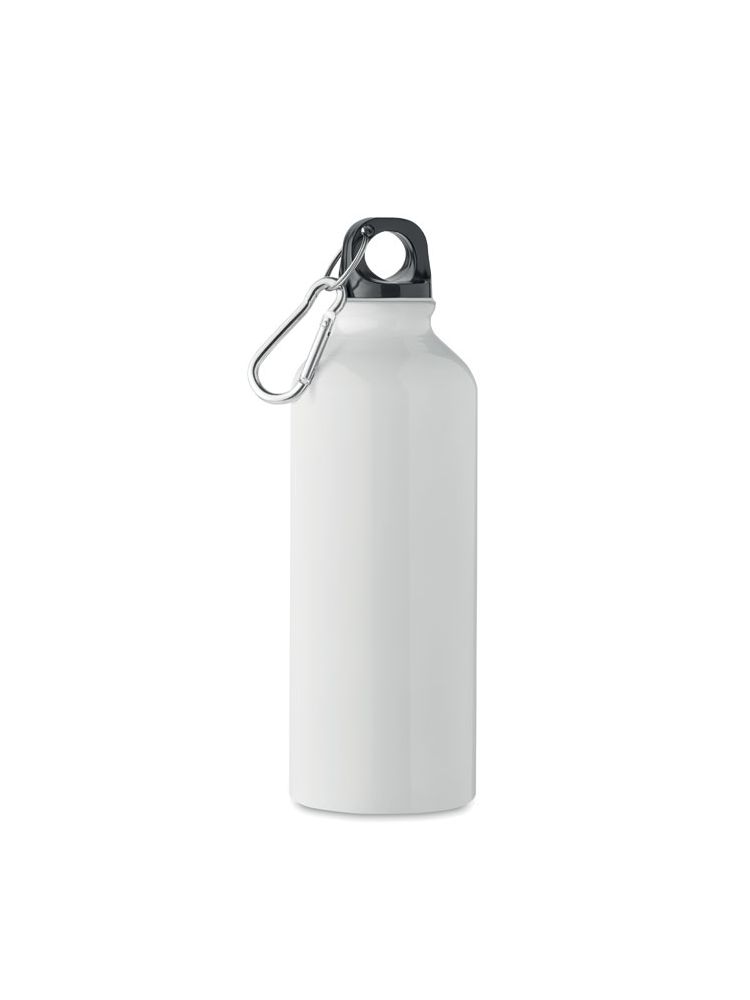 Jednościenna butelka z aluminium z recyklingu z karabińczykiem. Pojemność: 500 ml. Szczelna. Karabińczyk nie jest przeznaczony do wspinaczki (nie do profesjonalnego wykorzystania). Nadruk sublimacyjny dostępny tylko na białym produkcie.