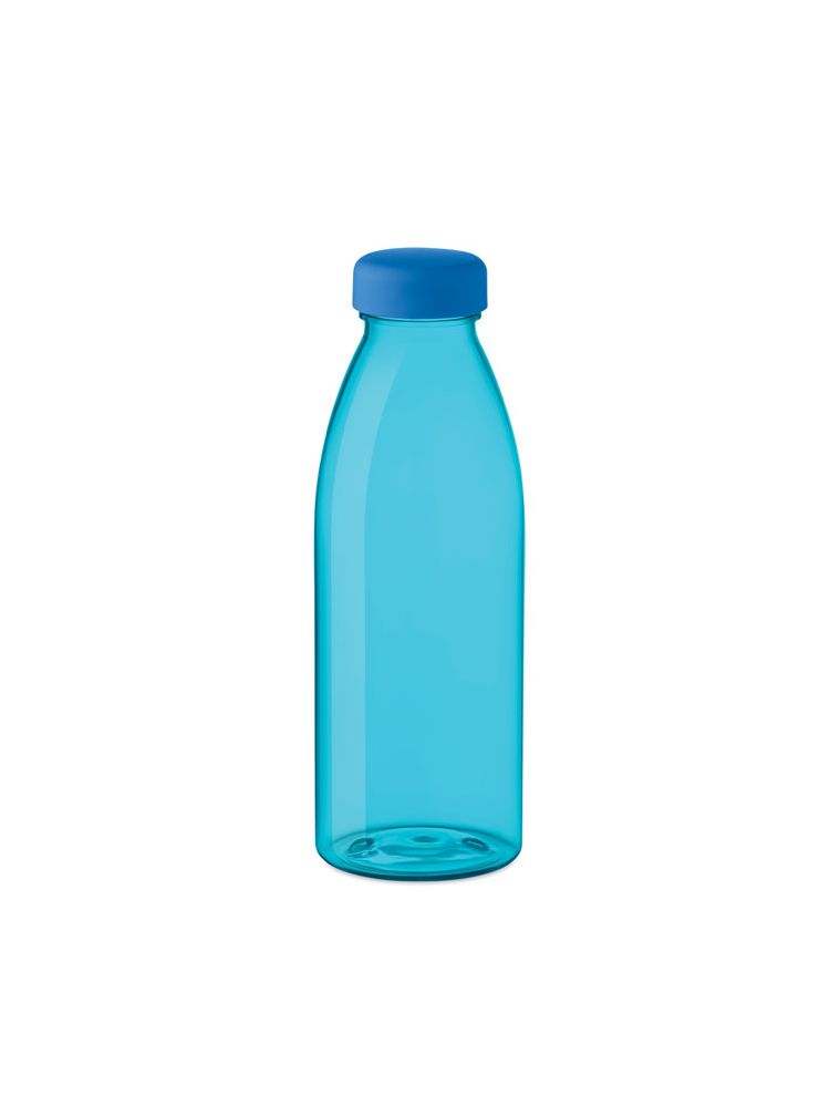 Butelka z RPET wolnego od BPA z pokrywką z PP. Szczelna. Pojemność: 500 ml. Nie nadaje się do napojów gazowanych.