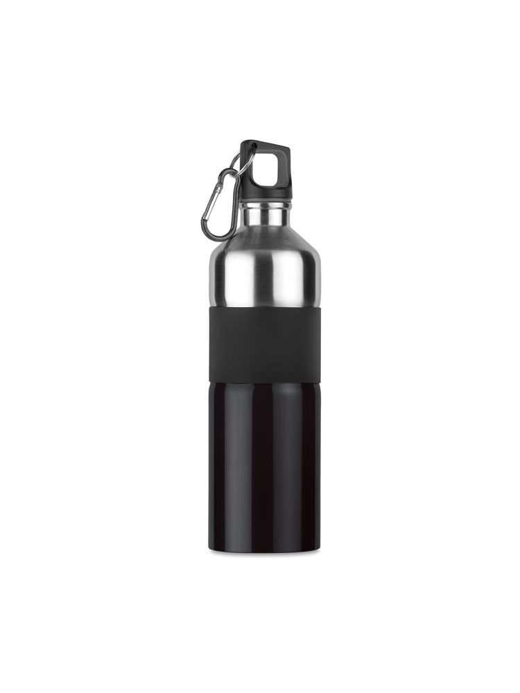 Jednościenna dwukolorowa butelka ze stali nierdzewnej z gumowym uchwytem i karabińczykiem. Pojemność: 750 ml. Karabińczyk nie jest przeznaczony do wspinaczki (nie do profesjonalnego użycia).). Szczelna. Ponieważ jest to butelka z pojedynczą ścianką, może dochodzić do wymiany ciepła.