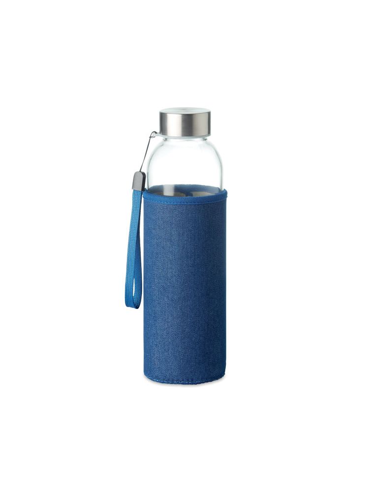 Szklana butelka z etui z neoprenu imitującego dżins. Pojemność: 500 ml. Nie nadaje się do napojów gazowanych. Szczelna.