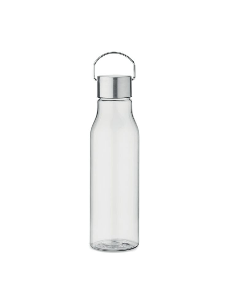 Butelka do picia z RPET, wolna od BPA, z zakrętką ze stali nierdzewnej z uchwytem. Szczelna. Pojemność: 600 ml.