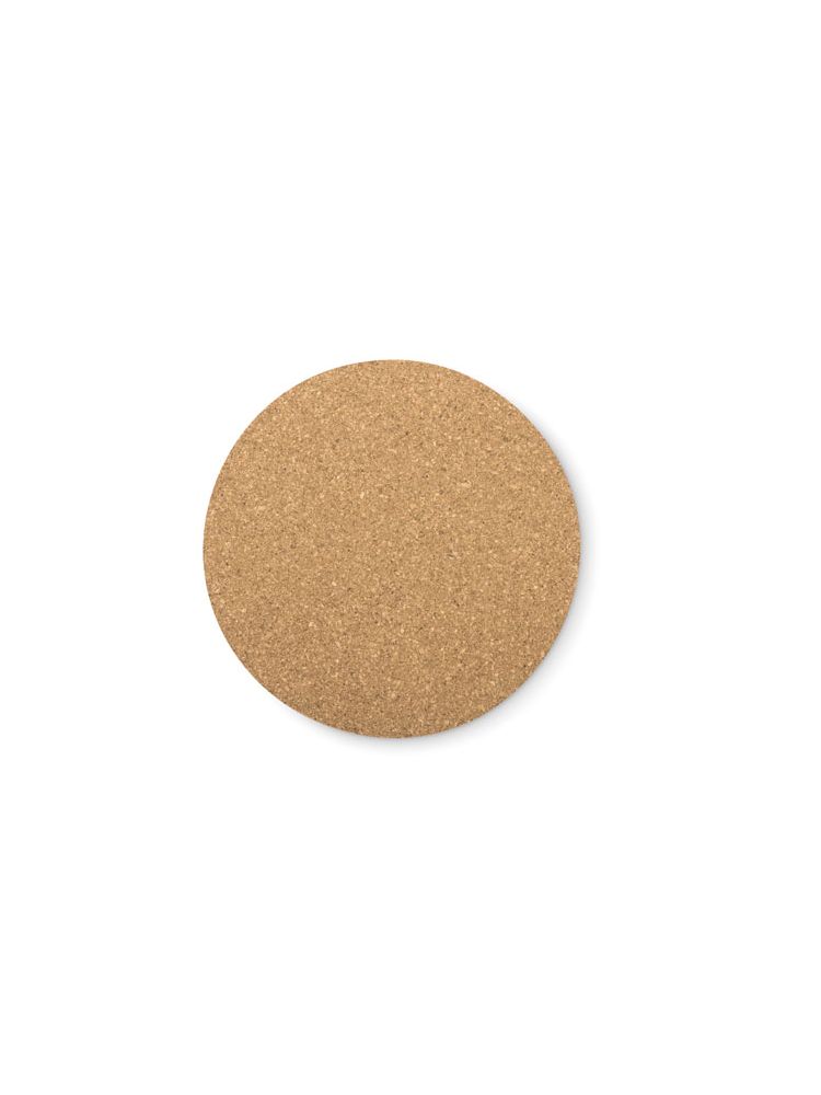 Okrągła podkładka korkowa. Korek jest materiałem naturalnym, ze względu na jego strukturalną naturę i porowatość powierzchni ostateczny wygląd nadruku na każdym artykule może się różnić.