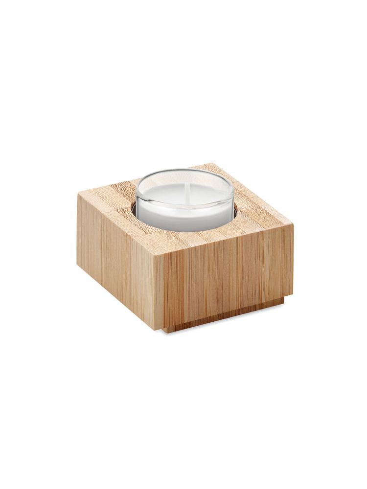 Świecznik na tealighty z bambusa z dołączonym tealightem. Bambus jest produktem naturalnym, dlatego mogą wystąpić nieznaczne różnice w kolorze, wzorze i rozmiarze.