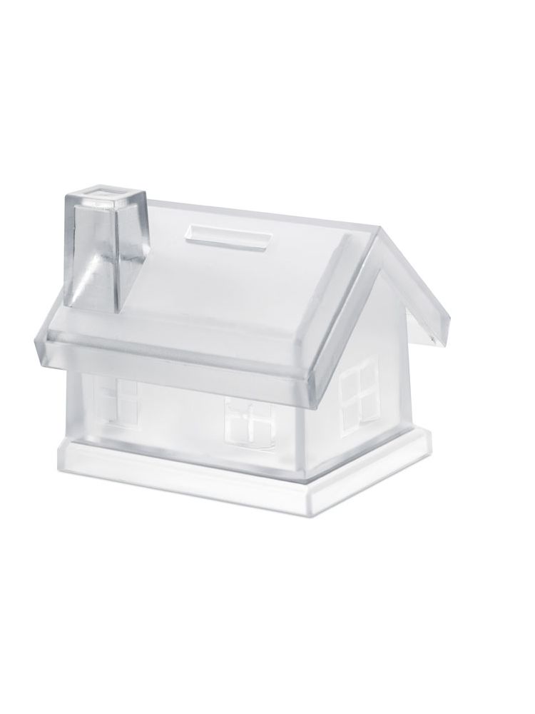 Skarbonka w kształcie domu. Materiał: plastik.