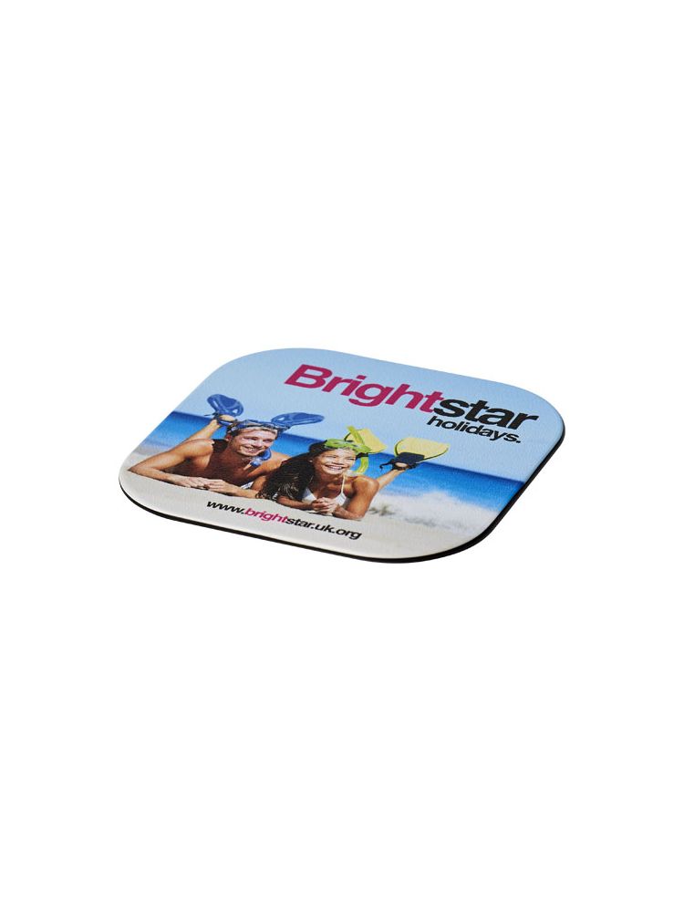 Kwadratowa podkładka Brite-Mat® chroni stoły przed plamami i kręgami ze szklanek lub kubków przez cały czas. Podstawka nadaje się do wysokiej jakości nadruków fotorealistycznych. A dzięki niskoprofilowej, antypoślizgowej podstawie nie zsunie się. Kwadratowa podkładka Brite-Mat® wykonana jest w 100% z tworzywa sztucznego pochodzącego z recyklingu i laminowanego papieru, co czyni ją ekologicznym wyborem.