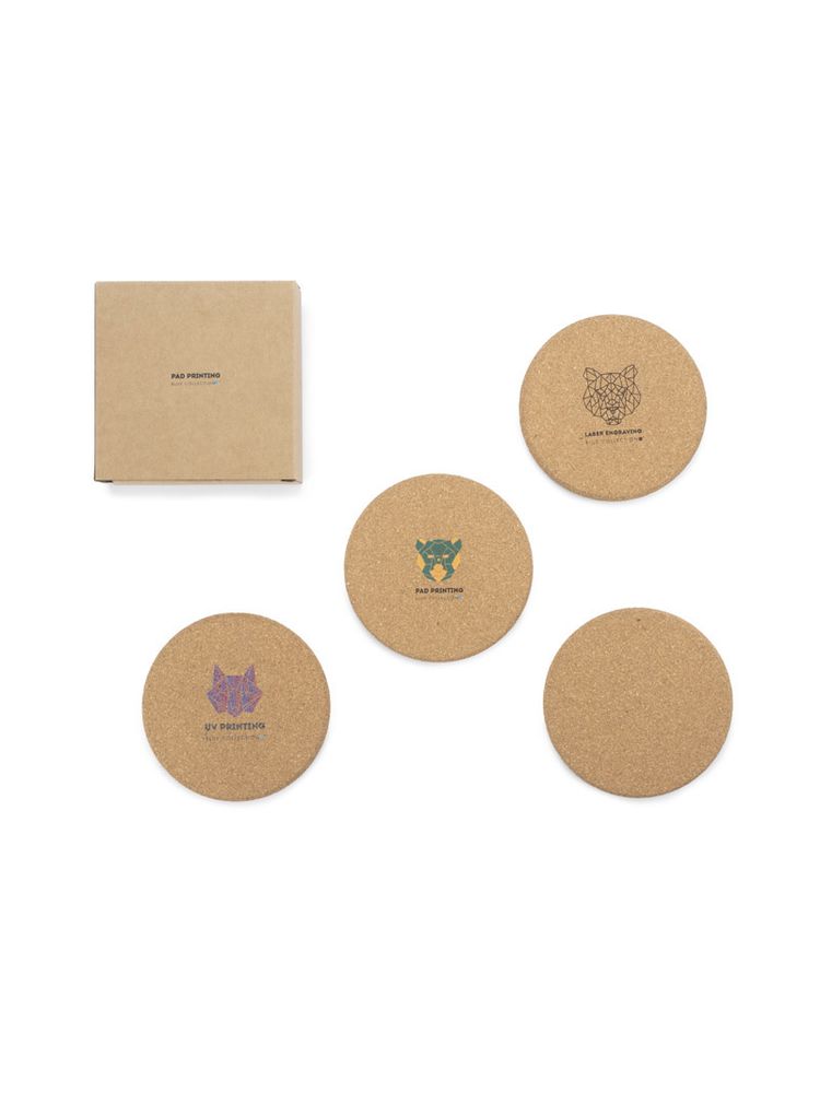 Zestaw czterech podkładek korkowych doskonale sprawdzi się w domu wpisując się w każdy rodzaj wnętrza. Podkładki o grubości około 7 mm cechują się dużą wytrzymałością. Świetnie zabezpieczają przed zarysowaniem blatów. Zapakowane w kraftowe pudełko.