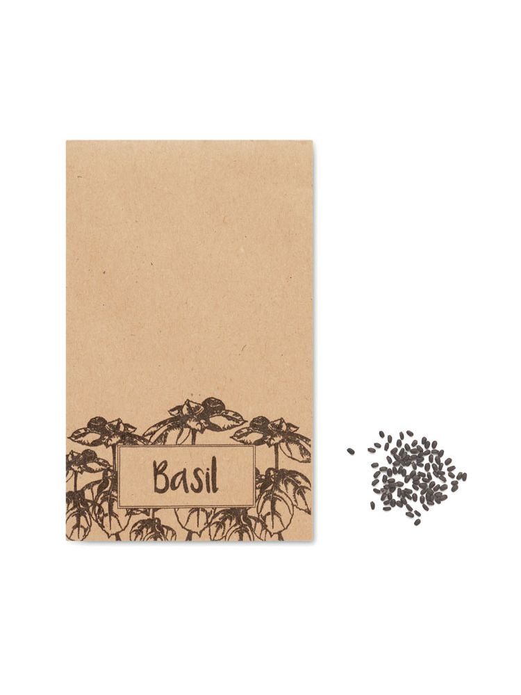 Nasiona bazylii w papierowej kopercie. Wyprodukowano w EU.