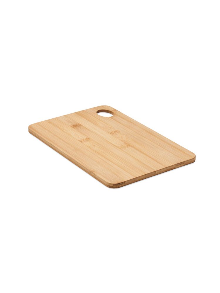 Duża deska do krojenia z drewna bambusowego z otworem do zawieszenia. Bambus jest produktem naturalnym, dlatego mogą wystąpić nieznaczne różnice w kolorze, wzorze i rozmiarze.