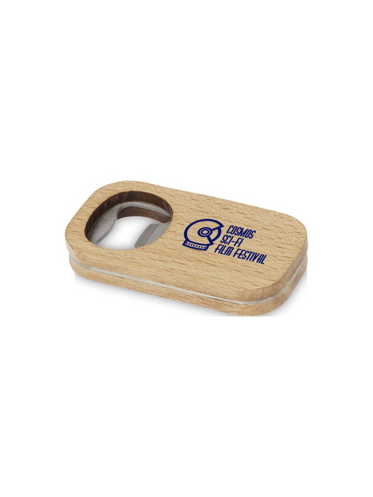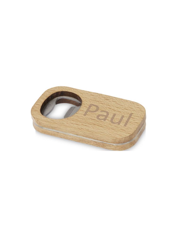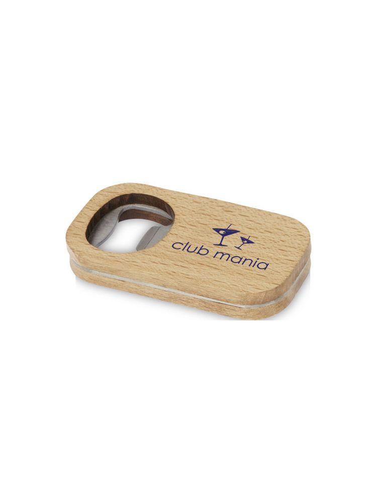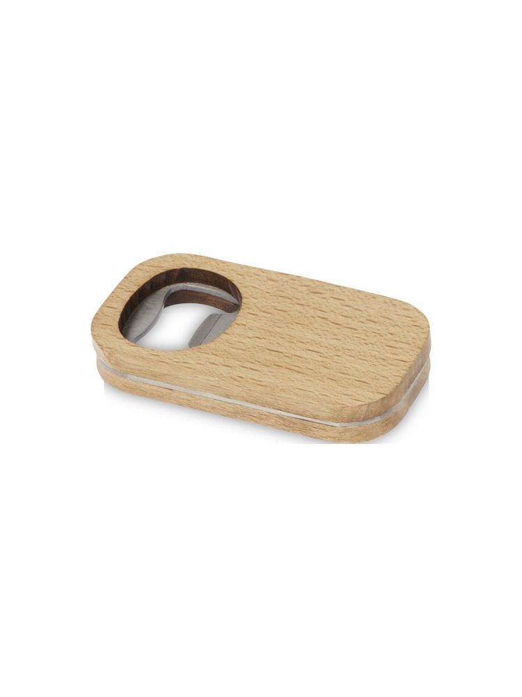 Wykonany ze stali nierdzewnej otwieracz do butelek o drewnianej powierzchni.