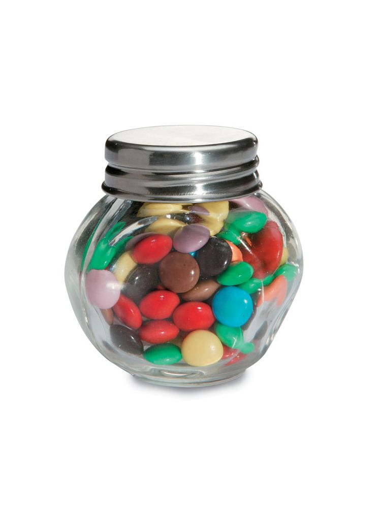 Czekoladowe drażetki w słoiczku. Zawartość: 40 gr.