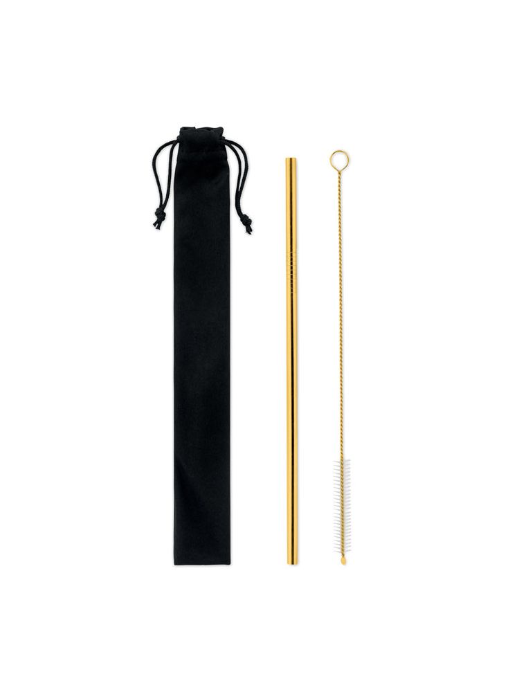Słomka ze stali nierdzewnej do wielokrotnego użytku, w zestawie szczoteczka do czyszczenia, całość w etui z mikrofibry.