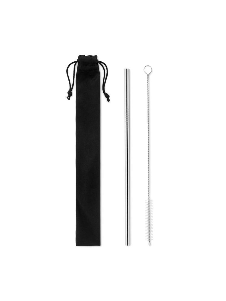 Słomka ze stali nierdzewnej do wielokrotnego użytku, w zestawie szczoteczka do czyszczenia, całość w etui z mikrofibry.