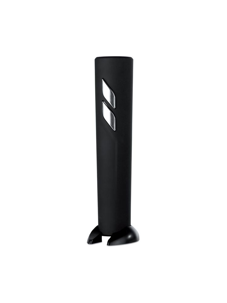 Elektryczny otwieracz do butelek, obudowa ABS, czarne matowe wykończenie. Dołączony nożyk do folii. 4 baterie nie dołączone.