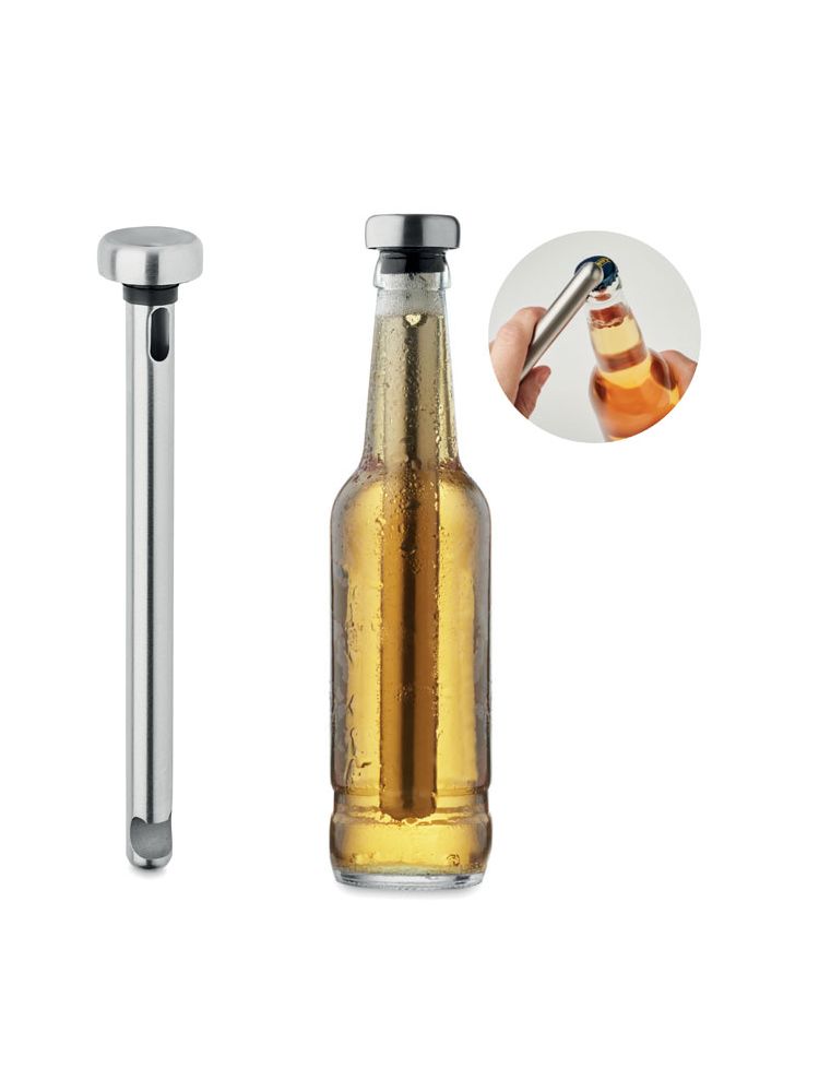 Otwieracz do butelek i schładzacz do napojów ze stali nierdzewnej. Zamroź schładzacz na ok. 45 minut, a następnie włóż go do butelki i ciesz się zimnym napojem.