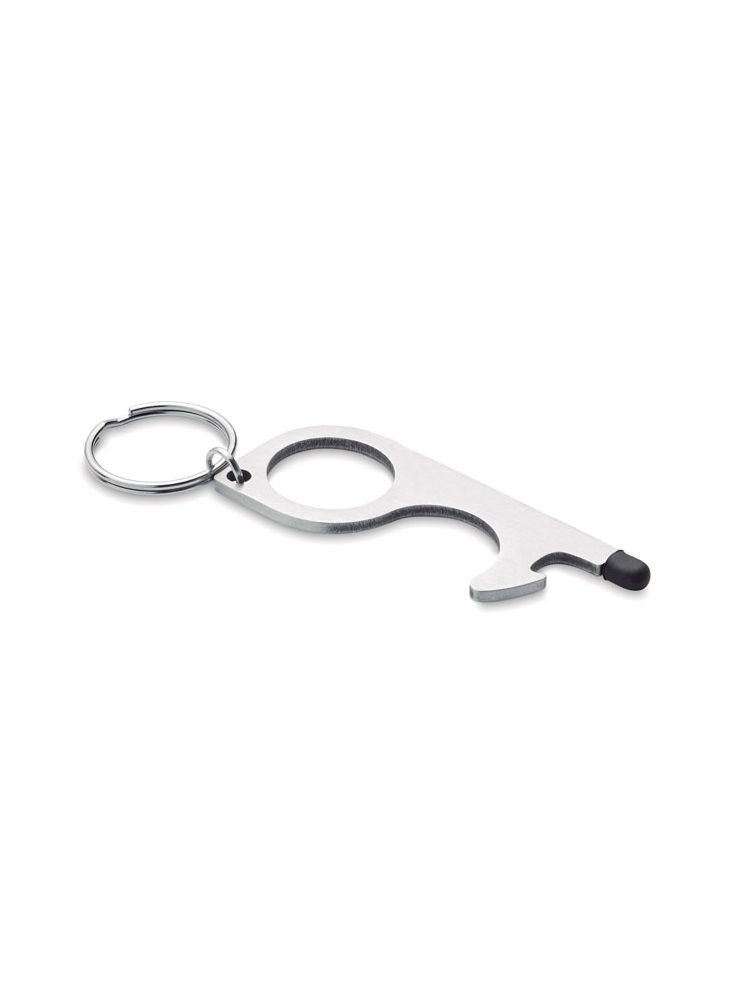 Wielofunkcyjny brelok 5 w 1.Otwórz drzwi, naciskaj przyciski wind, sygnalizacji świetlnej, bankomatów i urządzeń mobilnych bez dotykania ich. W tym otwieracz do butelek, rysik i brelok. Prosty sposób na zapobieganie rozprzestrzenianiu się zarazków.