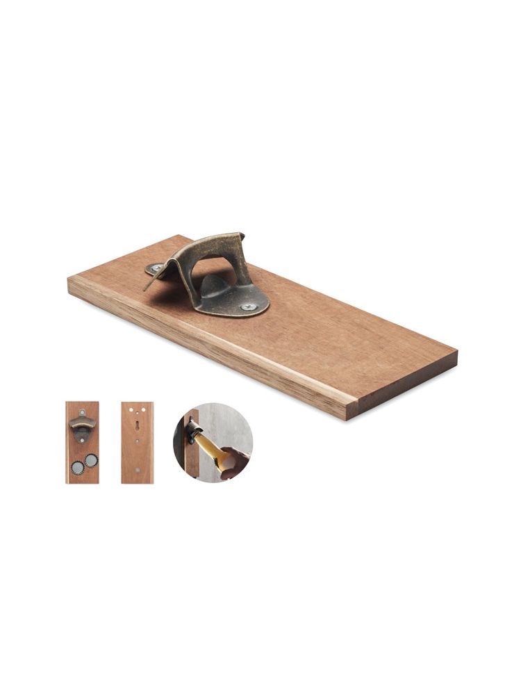 Montowany na ścianie otwieracz do butelek z drewna akacjowego i żelaza. Posiada silny magnes do łapania kapli oraz mocowania na lodówce, grillu itp.