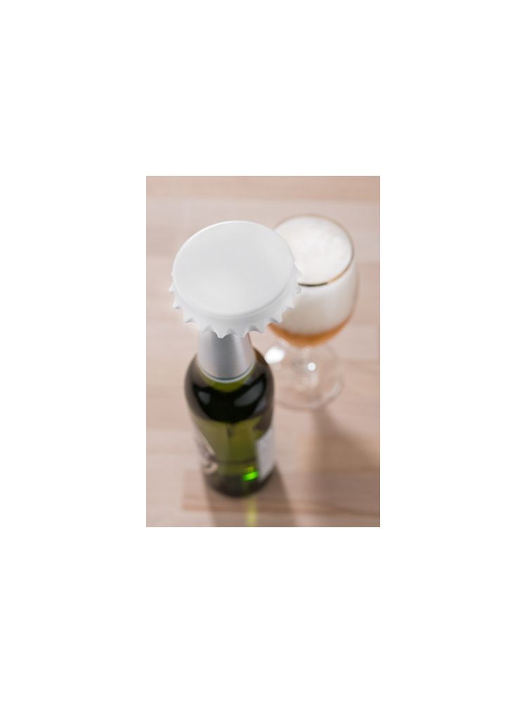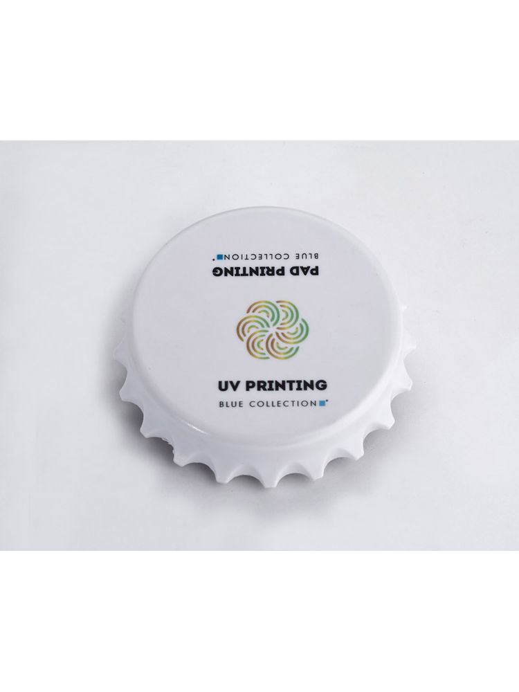 Otwieracz do butelek w kształcie kapsla. Posiada wbudowany magnes, za pomocą którego otwieracz można przymocować do lodówki. Znakowanie logo wykonujemy metodą nadruku.