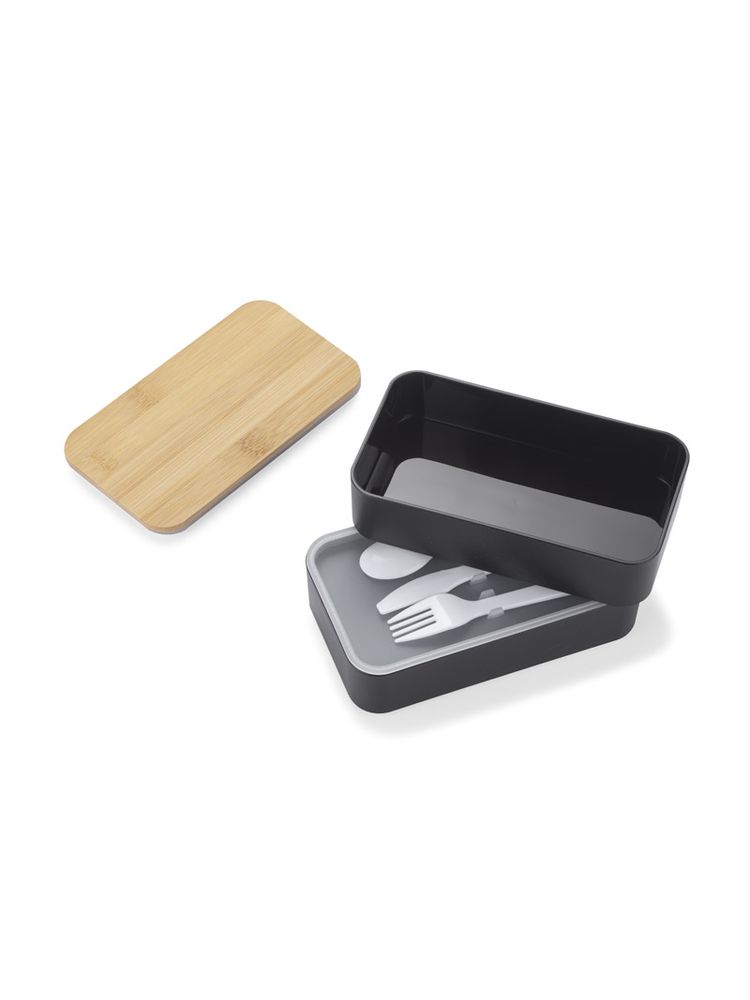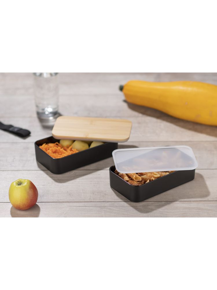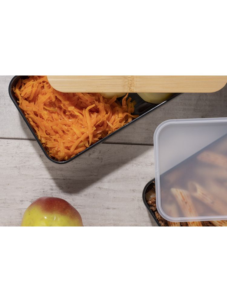 Pojemnik na żywność COUPLE wykonany jest z tworzywa, posiada bambusową przykrywkę i gumkę zapobiegającą przypadkowemu otwarciu. Pojemnik składa się z dwóch połączonych ze sobą komór, umieszczonych jedna pod drugą, rozdzielonych przykrywką. Pojemnik może być używany w zmywarce, kuchence mikrofalowej i zamrażarce.