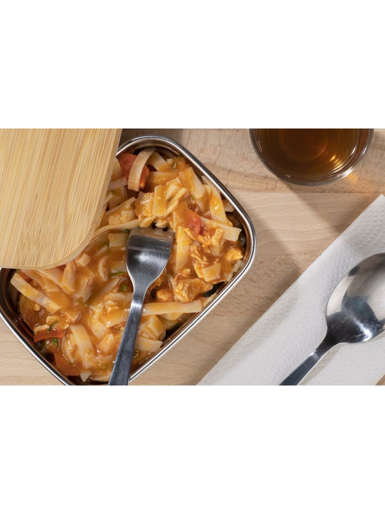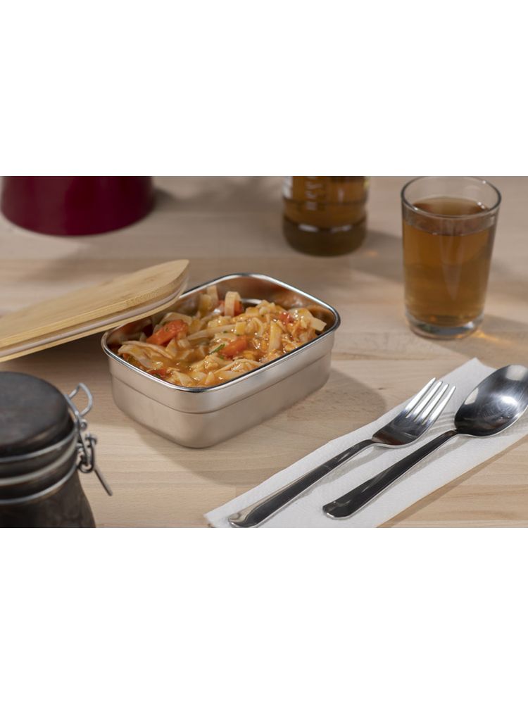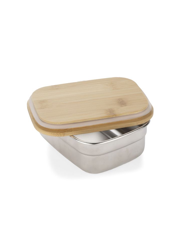 Pojemnik JOKI świetnie sprawdzi się do przechowywania żywności, a także do zapakowania gotowego posiłku i zabrania go ze sobą do pracy czy szkoły. Dużą zaletą pojemnika jest niepochłanianie zapachów pożywienia. Zamykany za pomocą bambusowej przykrywki. Wykonany ze stali nierdzewnej 304. Pojemność 470 ml.