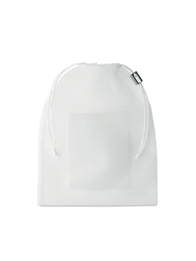 Torba na żywność z siatki RPET z przednią kieszenią i białym sznurkiem z PP.