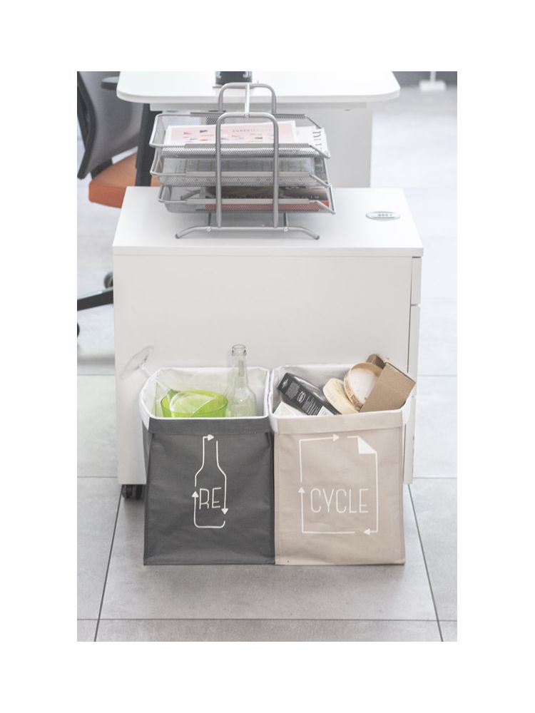 Zestaw dwóch worków wykonanych z myślą o możliwości segregacji i zachowaniu porządku. Zaprojektowane z minimalizmem, sprawdzą się nie tylko w biurze ale także w domu. Mają pomysłowy i autorski nadruk zaprojektowany specjalnie dla BLUECOLLECTION. Zakończone rzepem pozwalającym na złączenie obu worków. Wykonane z polipropylenu.