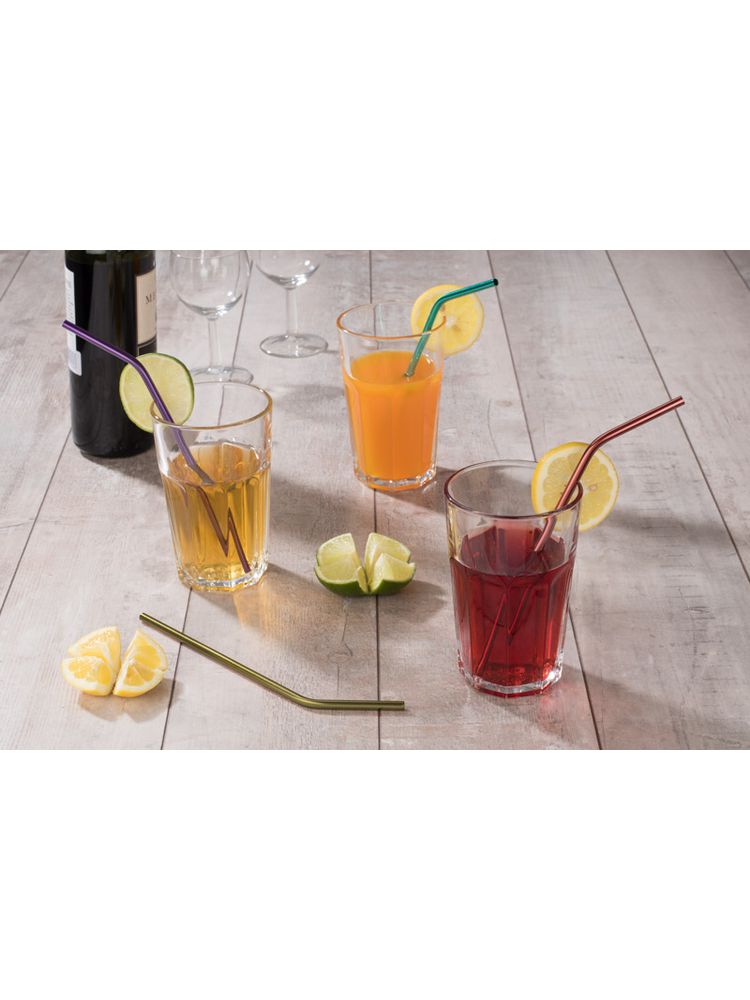 Zestaw słomek ze stali nierdzewnej PARTY to cztery zakrzywione słomki – każda w innym kolorze. Zapakowane w praktyczny, welurowy woreczek, czyścik w zestawie. Idealnie sprawdzą się jako zestaw prezentowy. Świetnie wyglądają w szkle i nadają drinkowi oryginalności. Jest to produkt wielorazowego użytku, dzięki czemu nie przyczyniasz się do zaśmiecania środowiska.