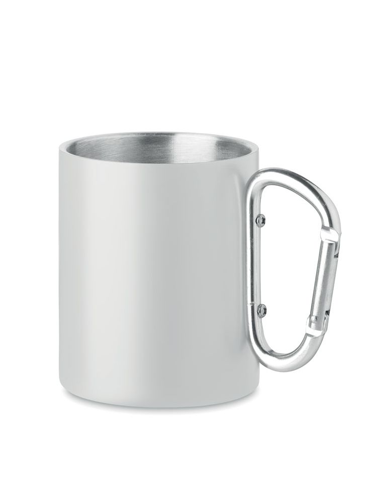 Sublimacyjny metalowy kubek w stylu vintage ze stali nierdzewnej o podwójnych ściankach z uchwytem w formie karabińczyka. Pojemność 300 ml.