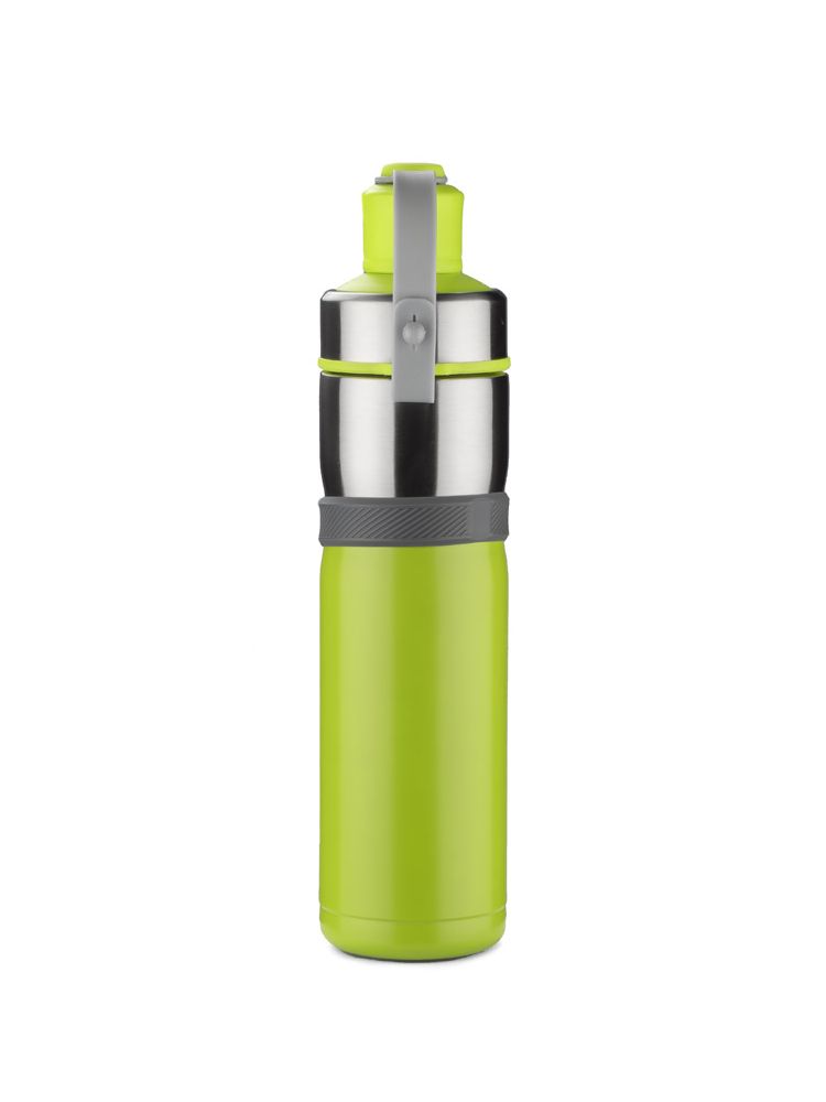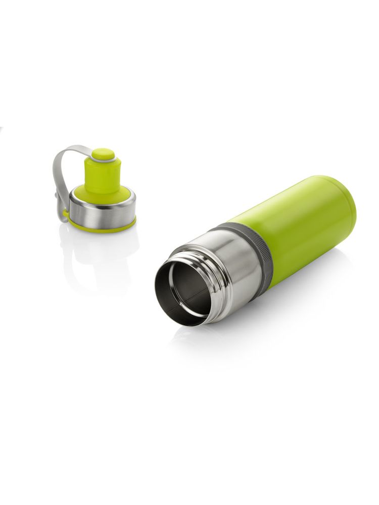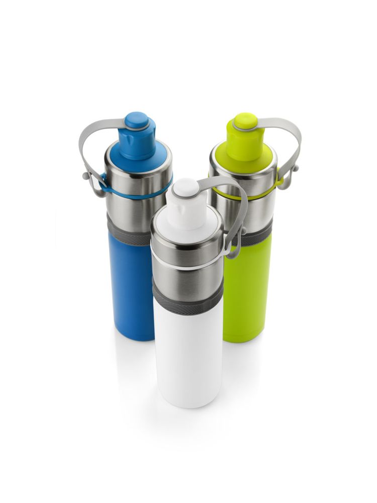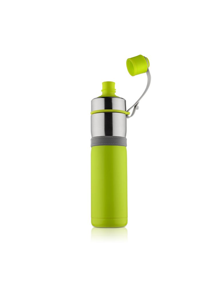 Sportowy bidon z próżnią przyda się na letnie wycieczki rowerowe bądź treningi na świeżym powietrzu. Dzięki zastosowanej do izolacji bidonu próżni utrzymuje on temperaturę napoju zarówno ciepłego jak i zimnego. Wygodne zamknięcie umocowane na pasku jest praktycznym rozwiązaniem podczas uprawiania sportu. Bidon wykonany ze stali nierdzewnej o podwyższonym standardzie.