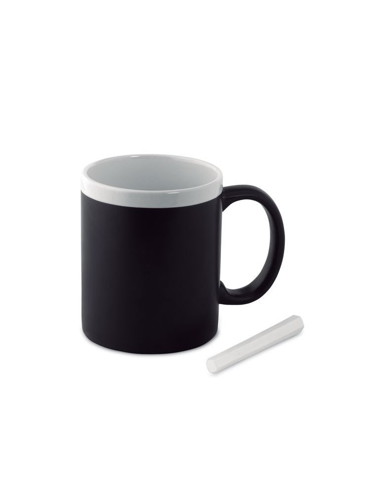 Kubek porcelitowy z powierzchnią dostosowaną do pisania kredą. Pojemność 300ml. Pakowanie indywidualny biały kartonik.