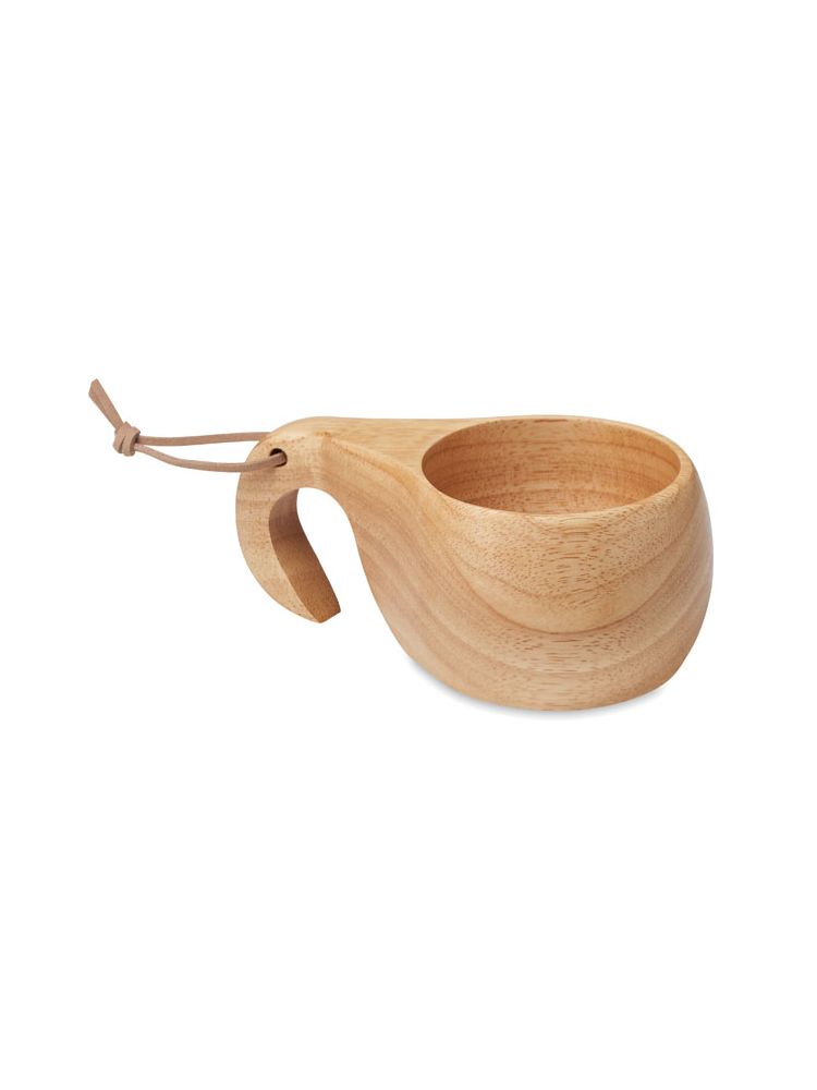 Kubek outdoorowy z dębu z linką do zawieszania. Pojemność: 120 ml.