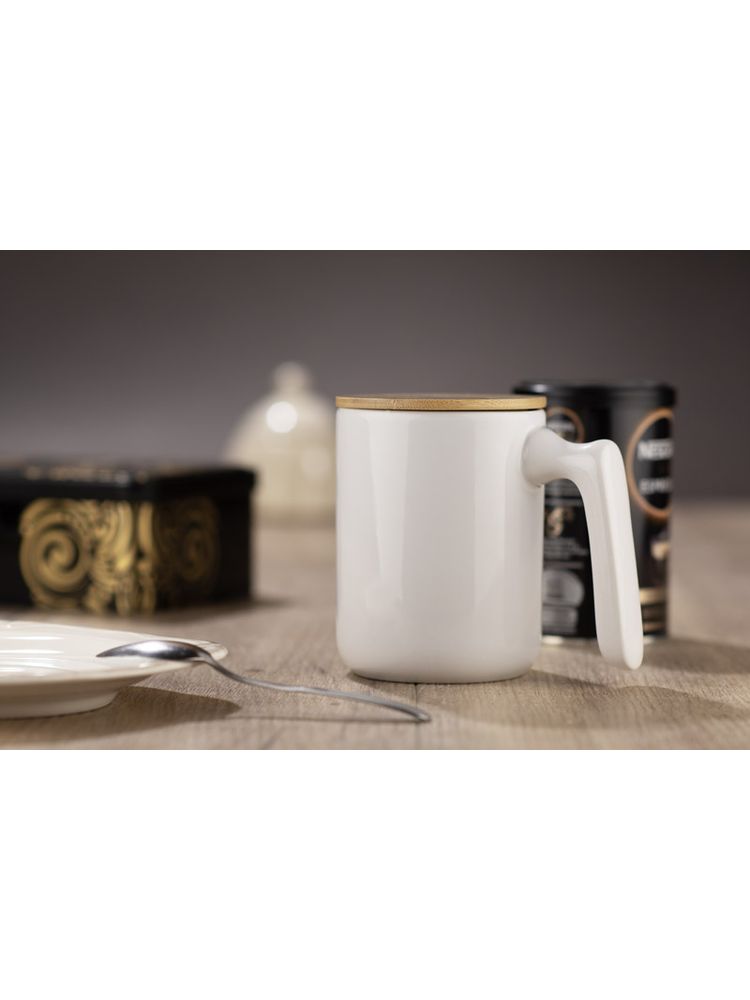 Kubek VIVIAN to perfekcyjne połączenie białej kamionki z bambusową przykrywką, która uchroni Twój napój przed przypadkowym rozlaniem, a także podtrzyma temperaturę napoju. Z jego pojemnością wynoszącą 420 ml jest idealnym towarzyszem na poranne kawowe rytuały lub herbatę w trakcie dnia.