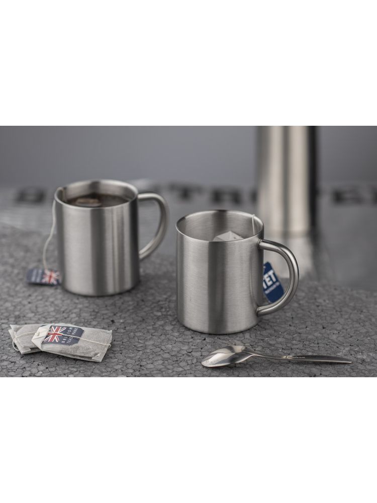 Poręczny kubek wykonany ze stali nierdzewnej. Pojemność 210 ml. Lekki, wygodny oraz wyposażony w podwójne ścianki dłużej trzymające ciepło. Znakowanie możliwe na korpusie kubka.