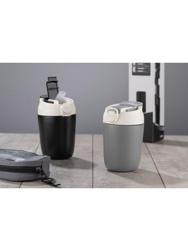 Kubek termiczny DOPPIO posiada bardzo pomysłową przykrywkę zawierającą tradycyjny ustnik oraz słomkę. Utrzymuje temperaturę napoju powyżej 9 godzin. Kubek jest wykonany ze stali nierdzewnej o podwyższonym standardzie.