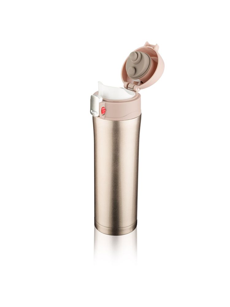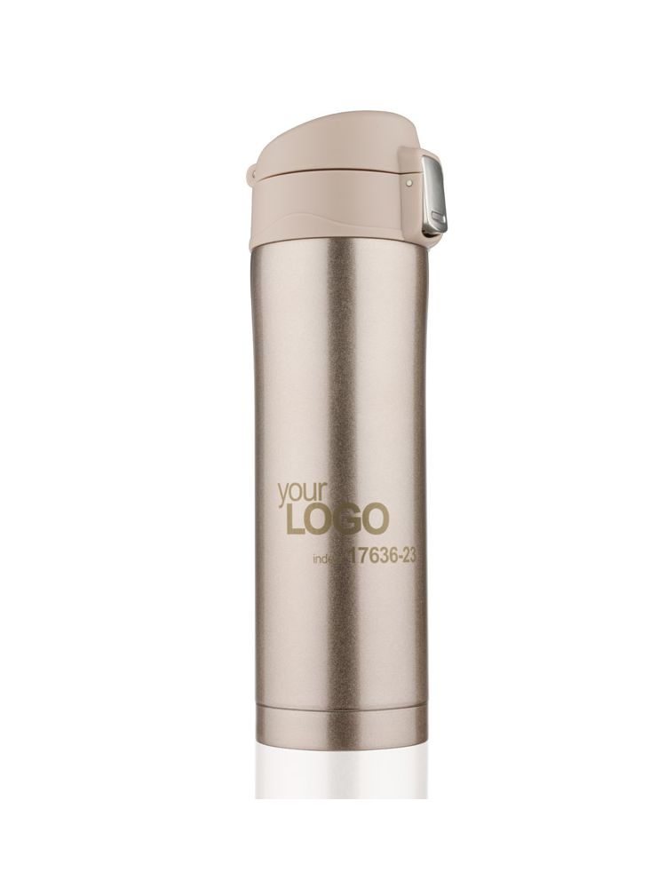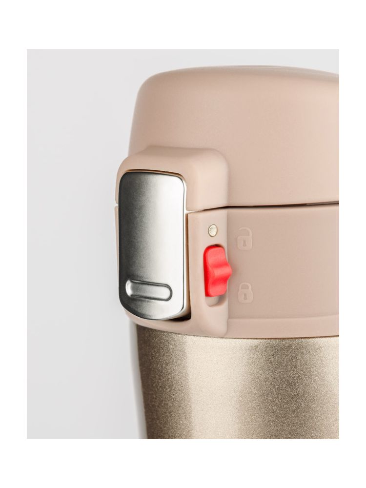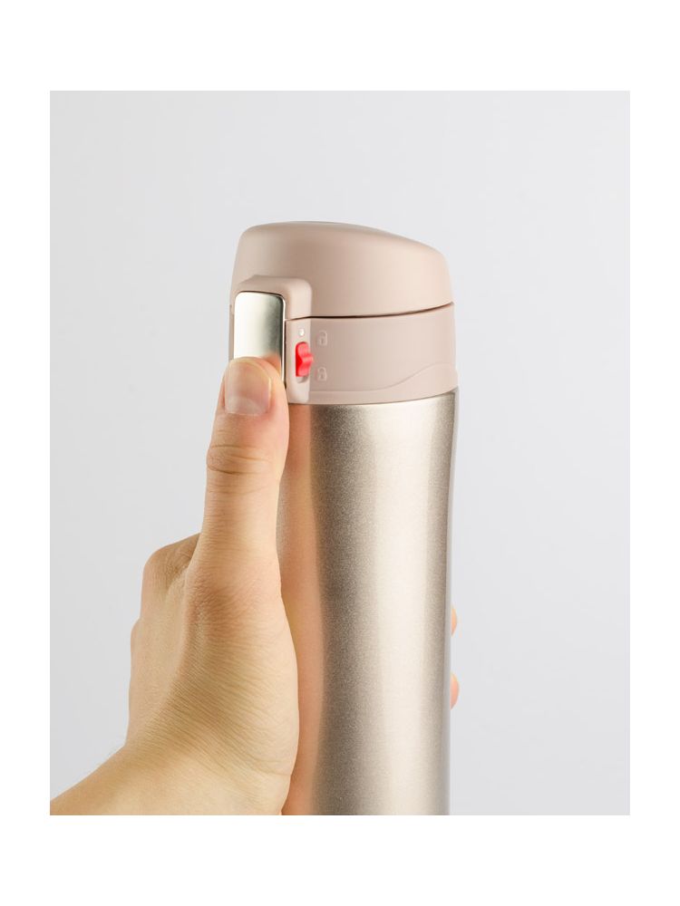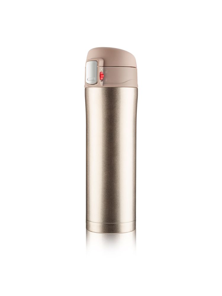 Kubek LOCK to najlepsze cechy kubka termicznego i termosu w jednym produkcie. Wygodny rozmiar i ustnik, z którego można łatwo pić, połączone są z całkowicie szczelnym zamknięciem nieprzepuszczającym cieczy oraz doskonałą termoizolacją. Dzięki próżni między ściankami kubek trzyma temperaturę ok. 13 godzin. W produkcie zastosowano nowatorską blokadę zamka, która zabezpiecza kubek przed przypadkowym otwarciem. Wnętrze wykonane ze stali, pojemność kubka to 440 ml. Znakowanie możliwe na korpusie kubka.