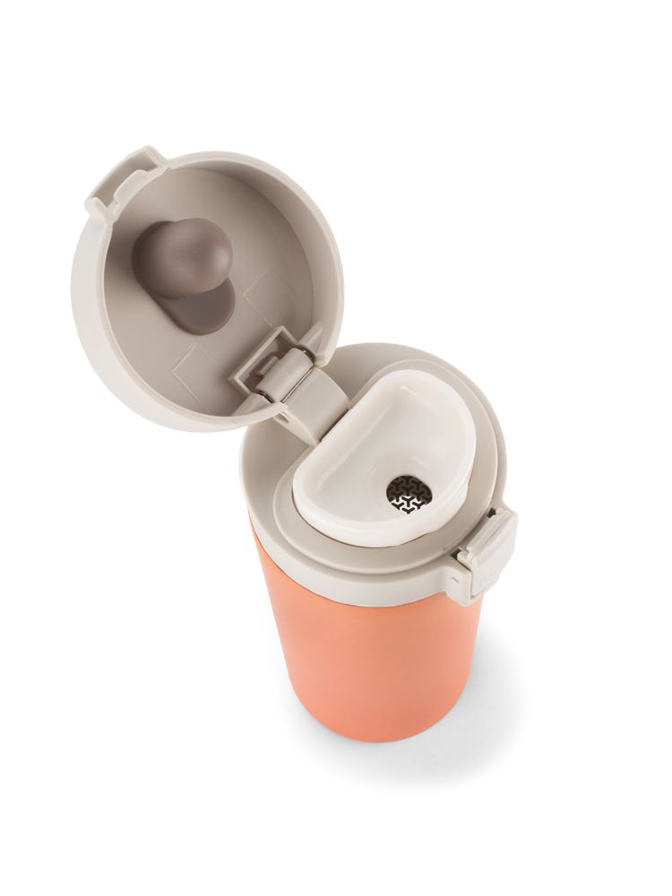 Kubek termiczny STAR to świetne połączenie wygody i użyteczności. Kubek o prostym wzornictwie wyposażony w blokadę zamknięcia zapobiegnie przypadkowemu otwarciu ustnika. Pojemność 350 ml jest idealna na poranną kawę. STAR zadowoli również miłośników herbaty, gdyż wyposażony jest w dodatkowe sitko na liście herbaty. Dzięki izolacji próżniowej kubek STAR utrzymuje temperaturę napoju ponad 13 godzin. Wnętrze wykonane ze stali nierdzewnej o podwyższonym standardzie.