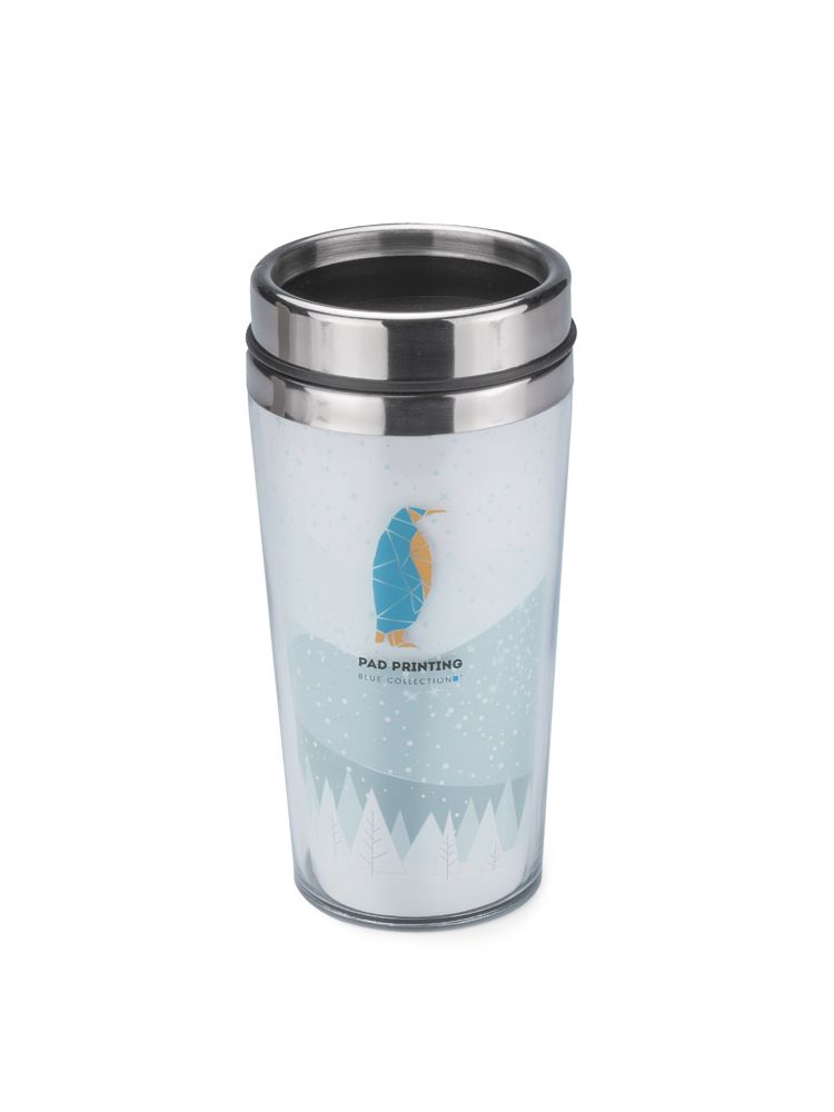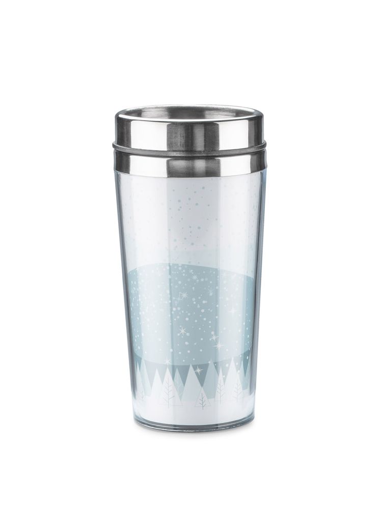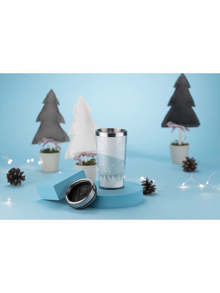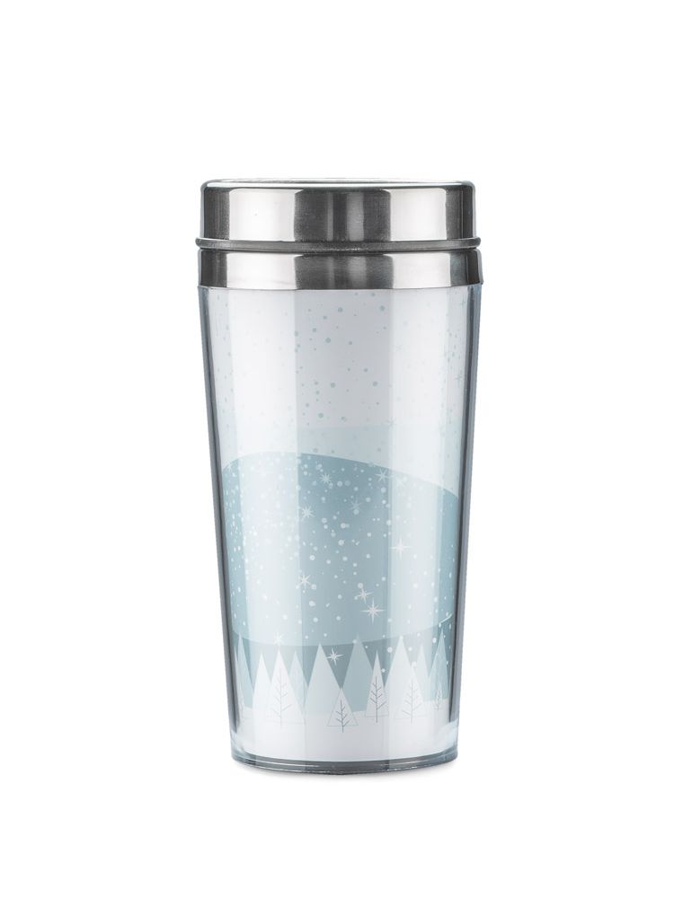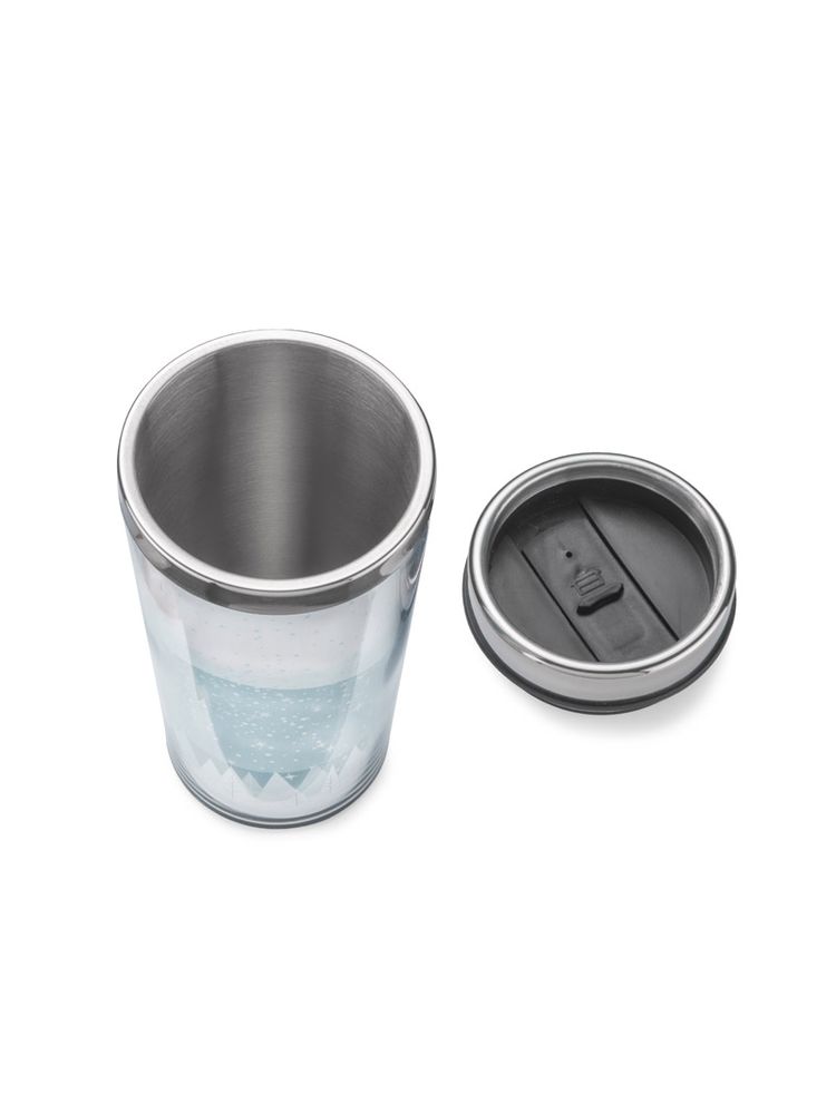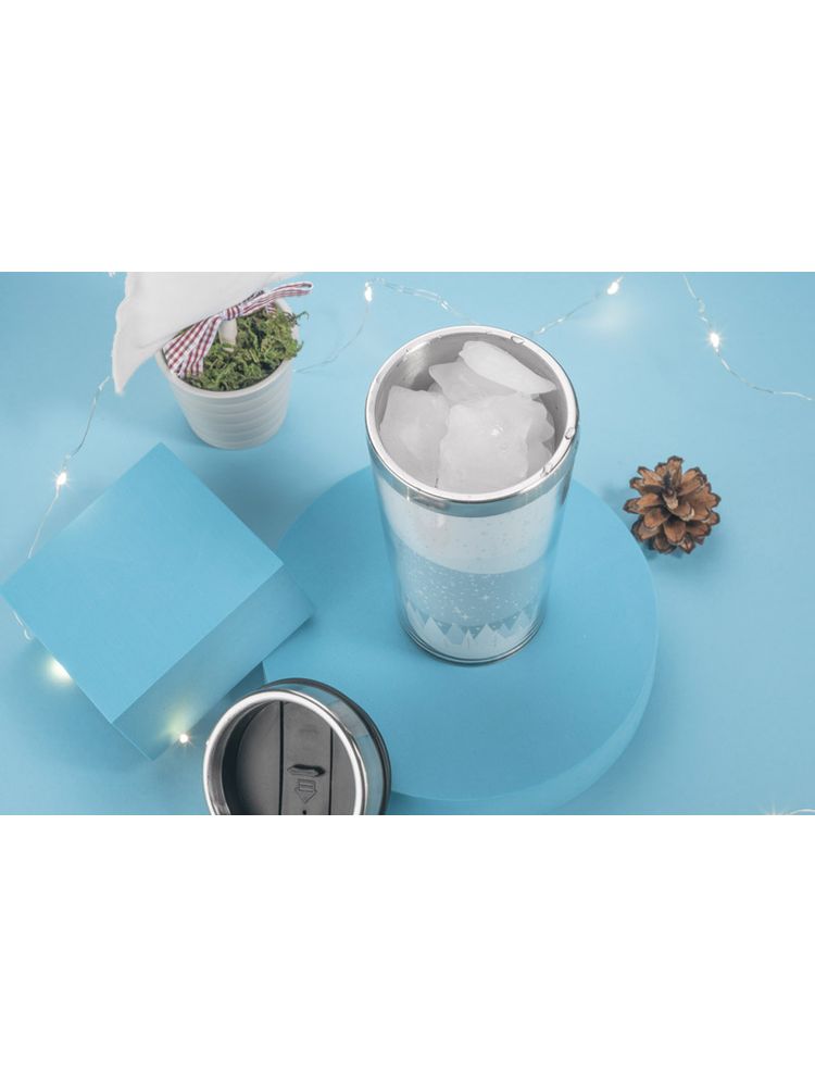 Elegancki kubek termiczny z sympatycznym, zimowym motywem. Kubek ma pojemność 450 ml, posiada antypoślizgowe dno. Wnętrze kubka wykonane jest ze stali, zewnętrzna warstwa wykonana jest z tworzywa.