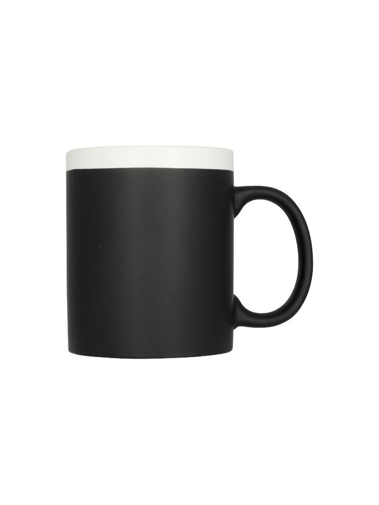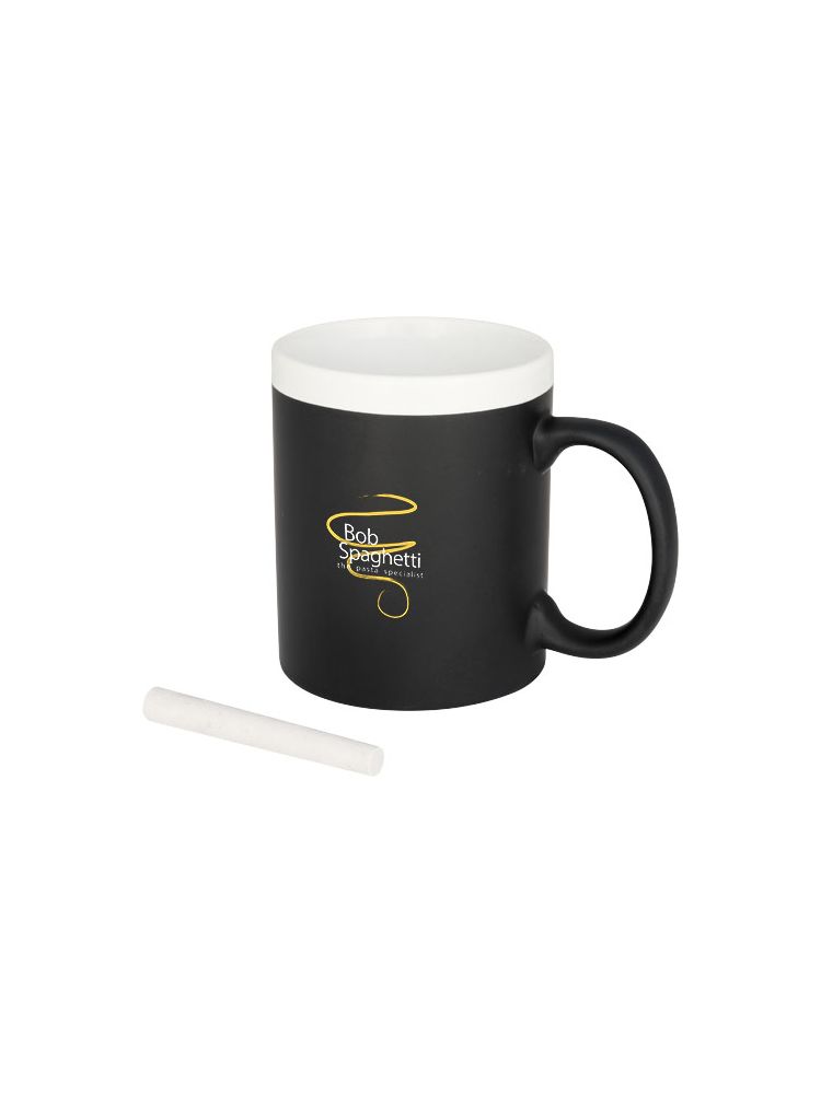 Dzięki wykończeniu z powłoki tablicowej, kubek można spersonalizować, używając do tego kredy. Opakowanie zawiera kredę. Zgodny z EN12875-1, nadaje się do mycia w zmywarce, również gdy jest dekorowany. Pojemność wynosi 330ml. Zapakowany w białe pudełko.
