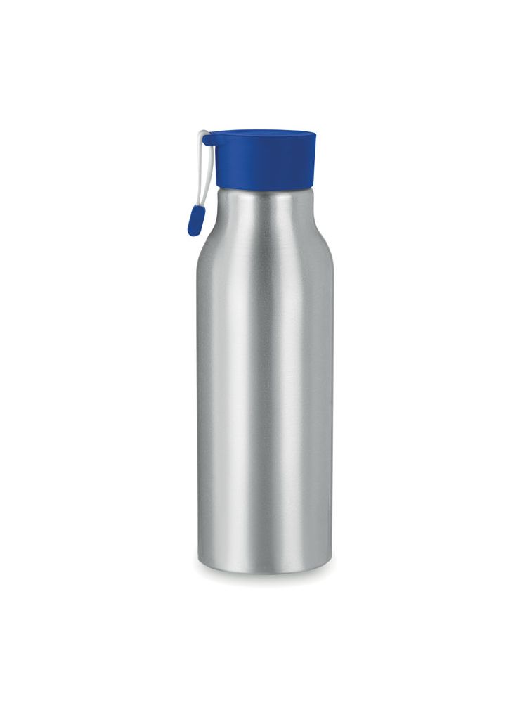 Aluminiowy bidon z pojedynczymi ściankami oraz silikonowym paskiem i pokrywką z PP. Szczelna. Pojemność: 500 ml.