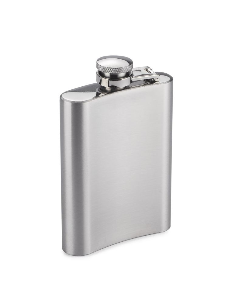 Piersiówka ze stali nierdzewnej o pojemności 110 ml, z bezpiecznym zamknięciem. Logo wykonujemy na powierzchni piersiówki poprzez grawerowanie laserem.