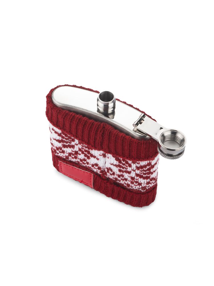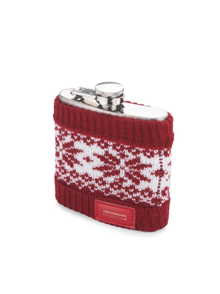 Piersiówka WARM ze stali nierdzewnej o pojemności 200 ml z bezpiecznym zamknięciem. Piersiówka ubrana w sweterek z zimowym wzorem. Doskonały pomysł na upominek.