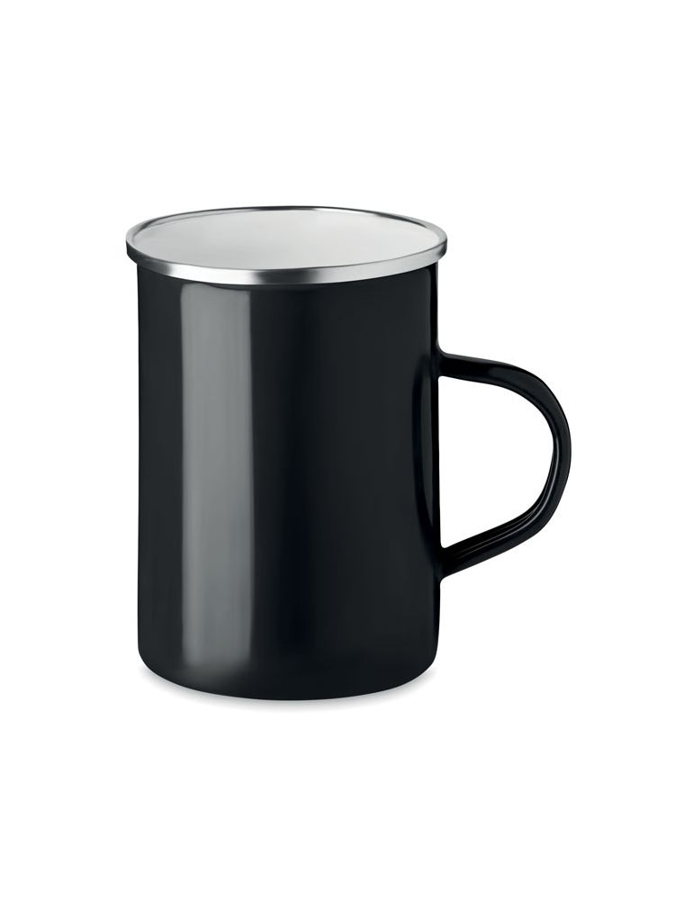 Metalowy kubek w stylu vintage z warstwą emalii. Pojemność 550 ml.