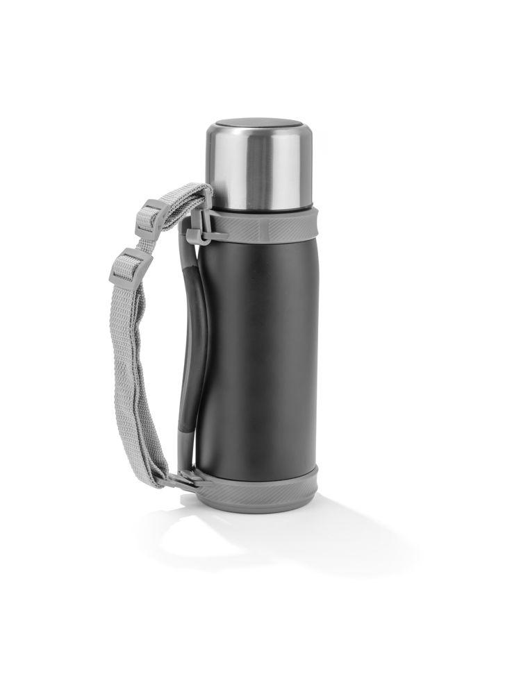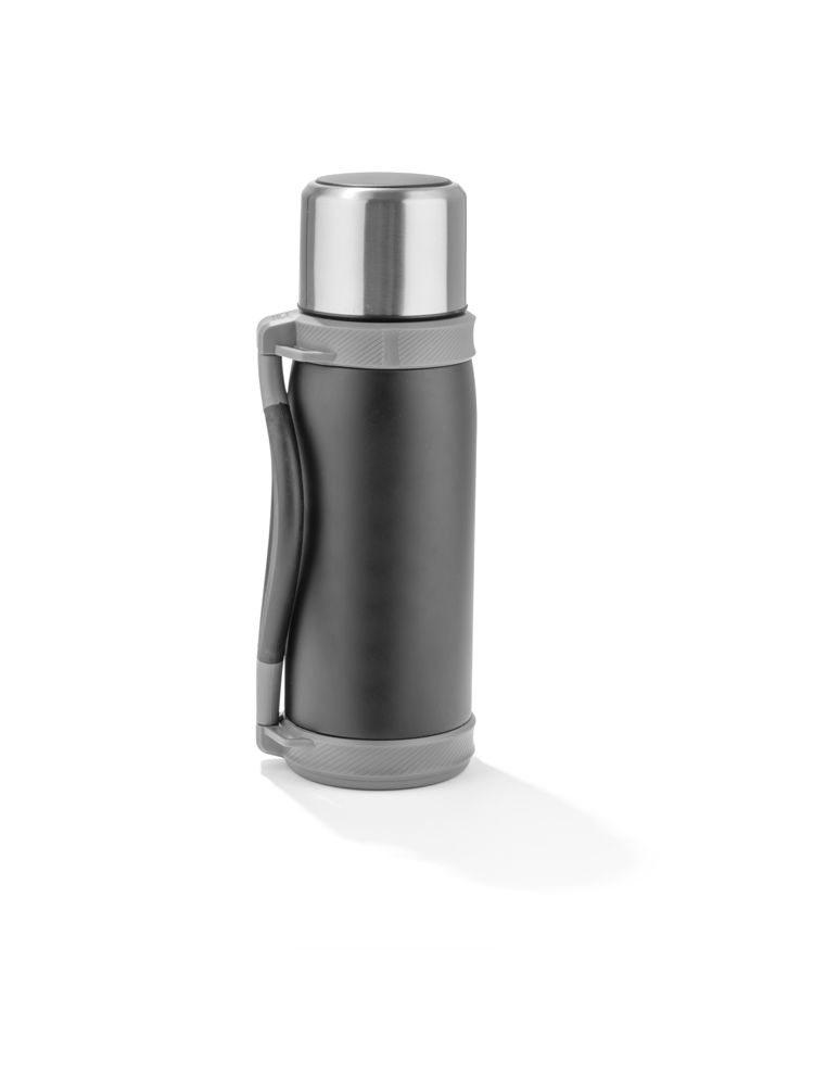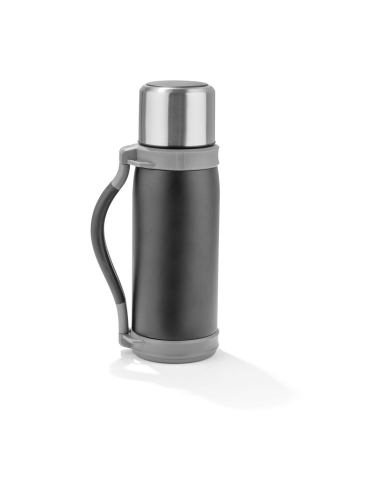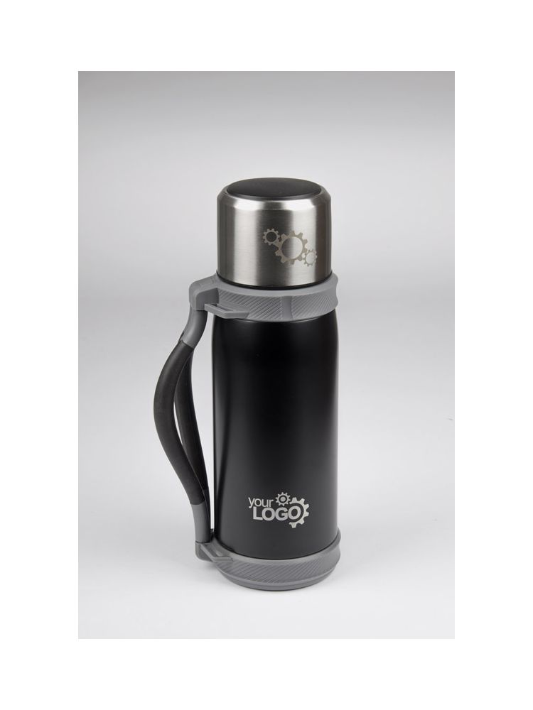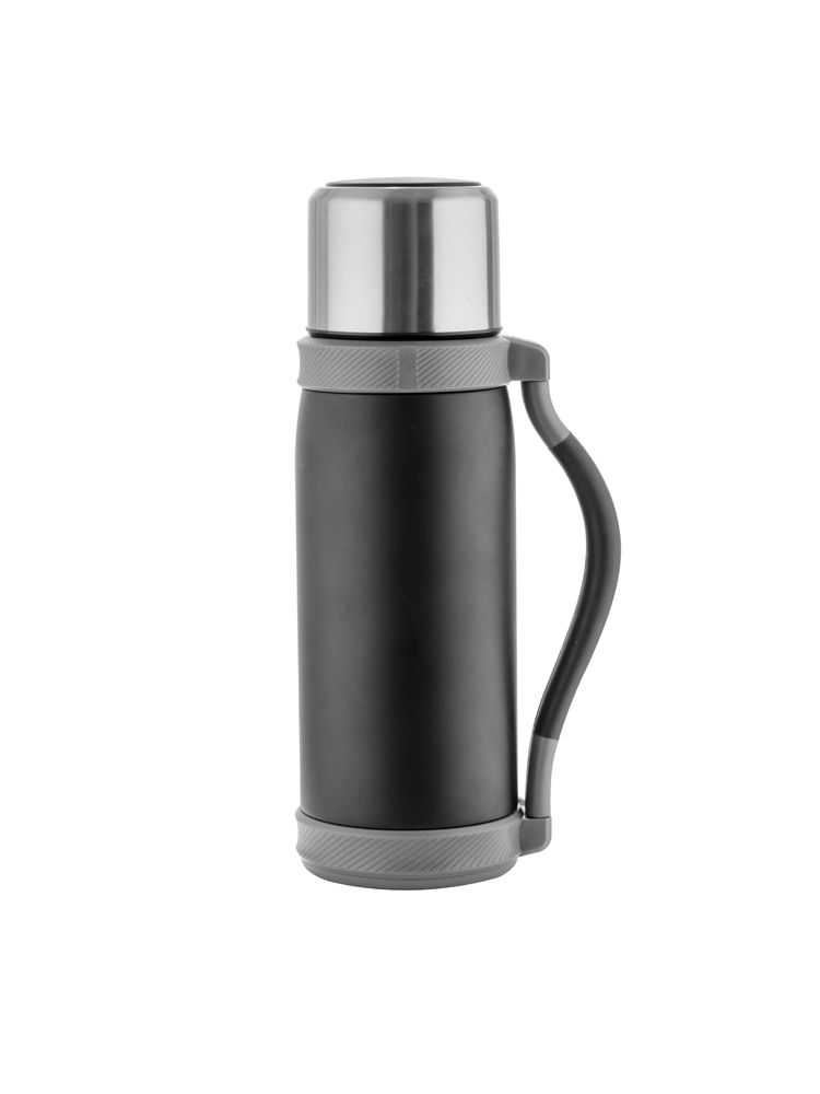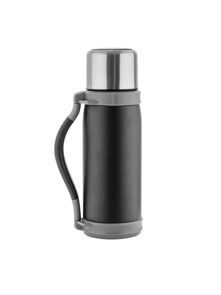 Duży, pojemny termos w sam raz na dłuższą wędrówkę. Termos wykonany jest ze stali nierdzewnej o podwyższonym standardzie i posiada izolację próżniową, która zapewnia utrzymanie temperatury napoju do 12 godzin. Termos o dużej pojemności – 1200 ml. Termos wyposażony jest w składany uchwyt oraz pasek.