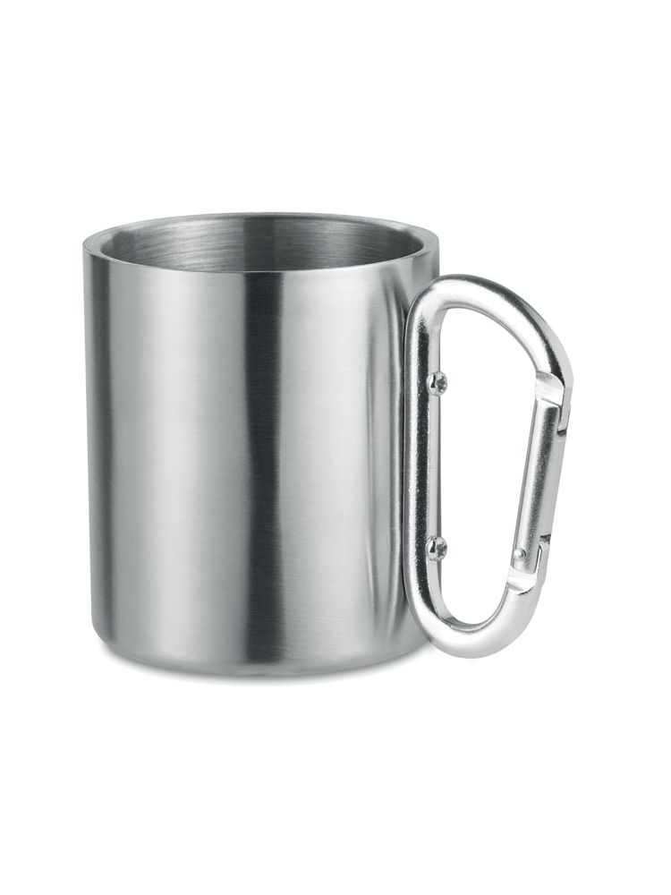 Kubek ze stali nierdzewnej, z uchwytem w postaci karabinka. Posiada podwójne ścianki. Pojemność: 220ml.