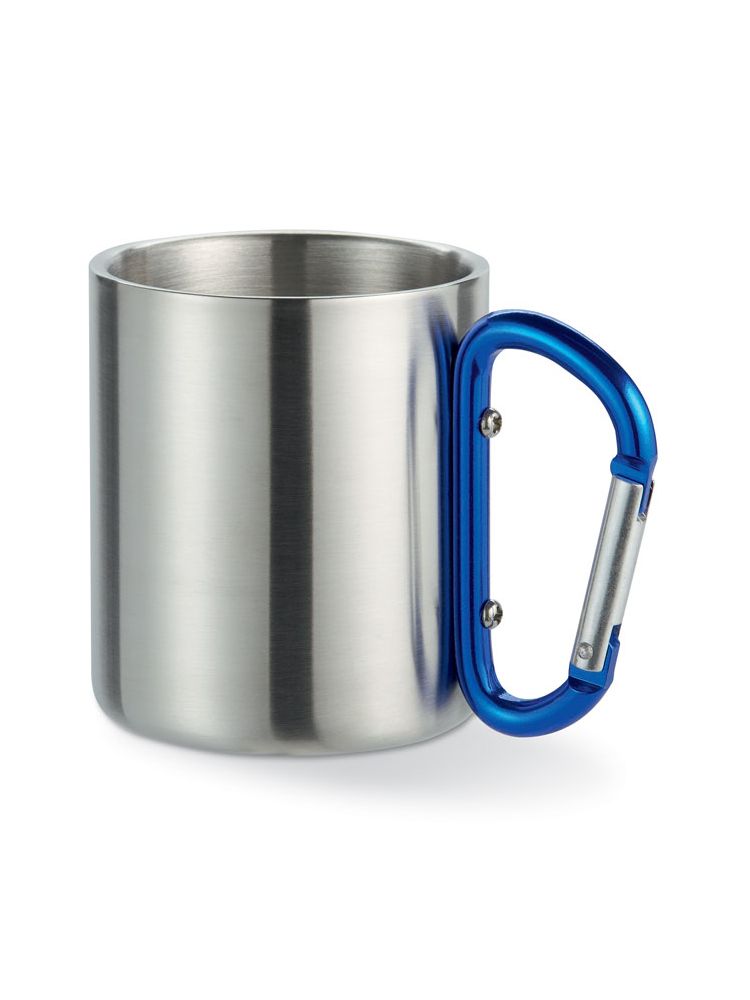 Kubek ze stali nierdzewnej, z uchwytem w postaci karabinka. Posiada podwójne ścianki. Pojemność: 220ml.