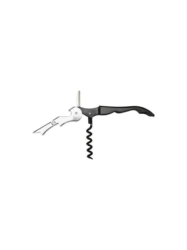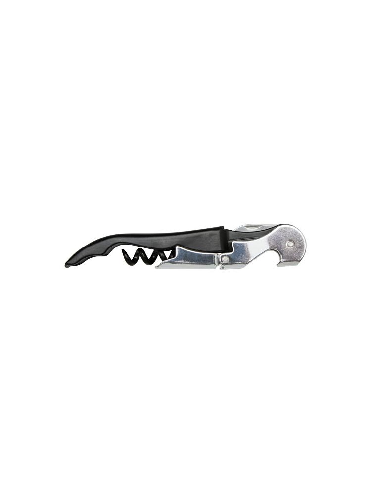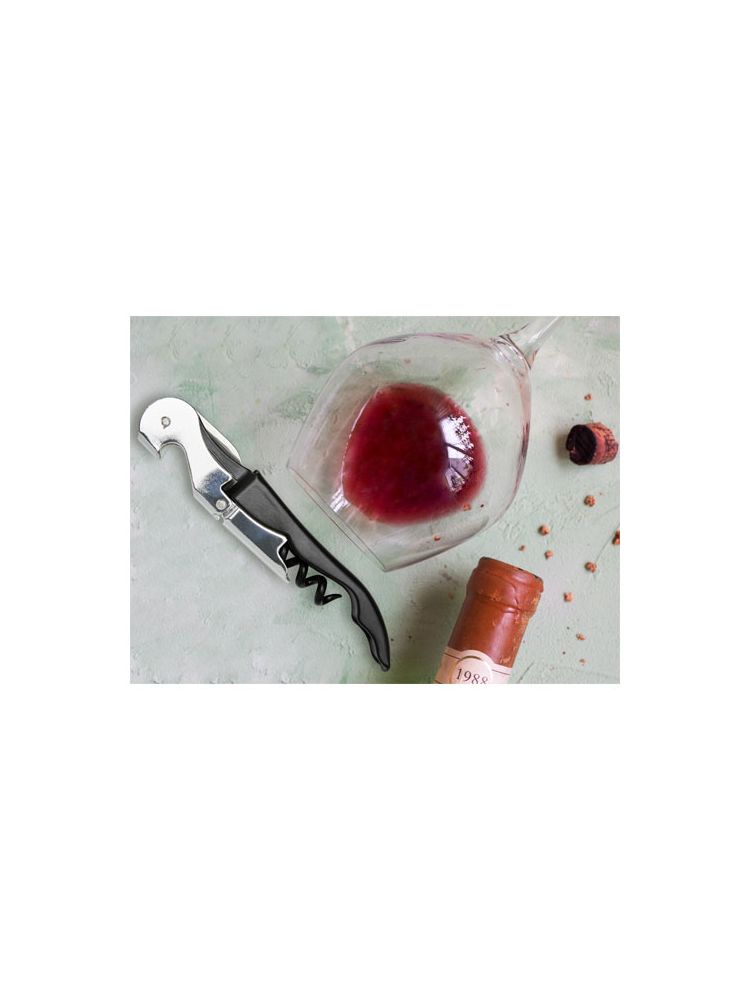 Nóż kelnerski ze stali nierdzewnej z kolorowym korpusem, wyposażony w korkociąg, przecinak do folii i otwieracz do butelek. Dzięki dwustopniowej konstrukcji można łatwo wyjąć korek z butelki.