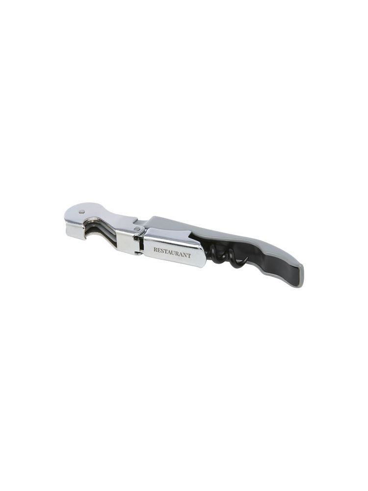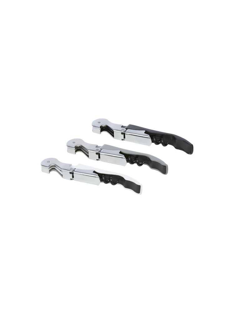Nóż kelnerski ze stali nierdzewnej z kolorowym korpusem, wyposażony w korkociąg, przecinak do folii i otwieracz do butelek. Dzięki dwustopniowej konstrukcji można łatwo wyjąć korek z butelki.