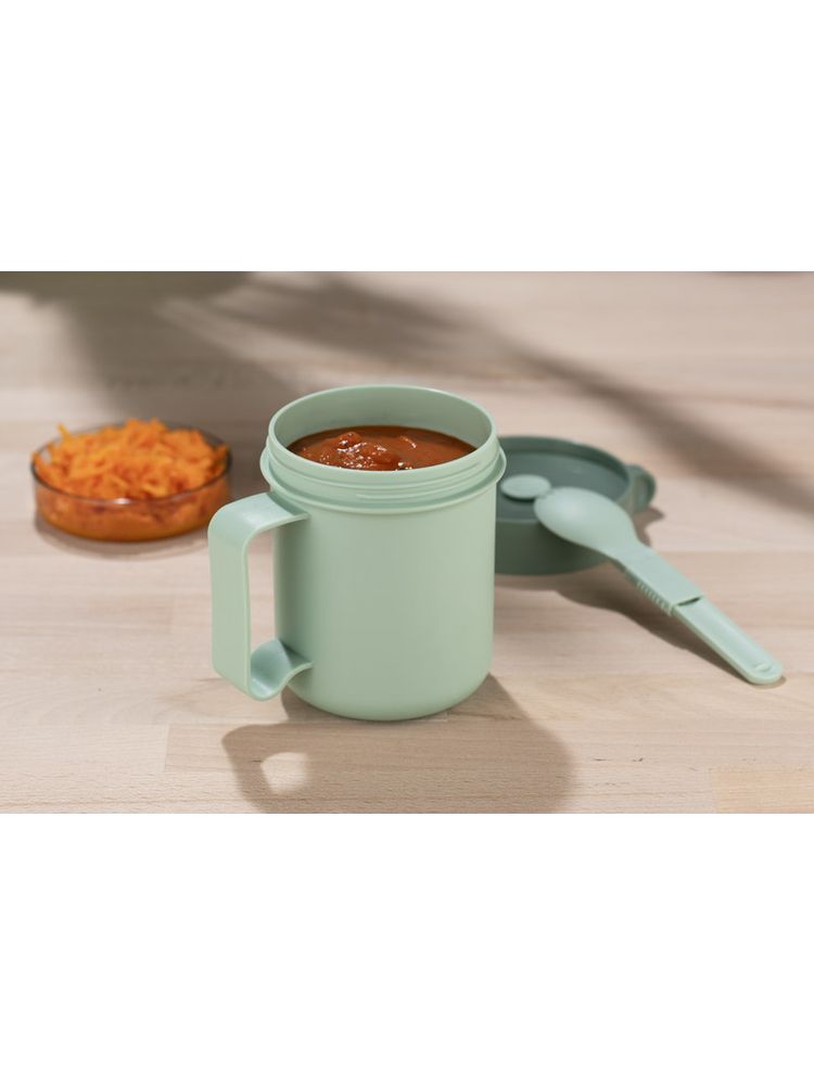 Pojemnik na zupę NODSY to przydatny i praktyczny gadżet. To znakomite rozwiązanie aby zabrać ze sobą zupę na przykład do pracy. Posiada wygodny uchwyt i dołączony składany łyżko-widelec. Pojemnik nadaje się do użycia w kuchenkach mikrofalowych, zmywarkach a także można w nim mrozić. Pojemność 500 ml.